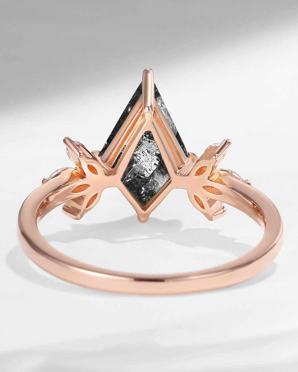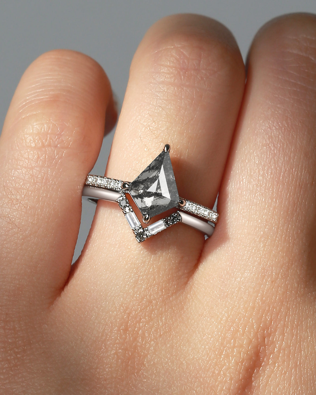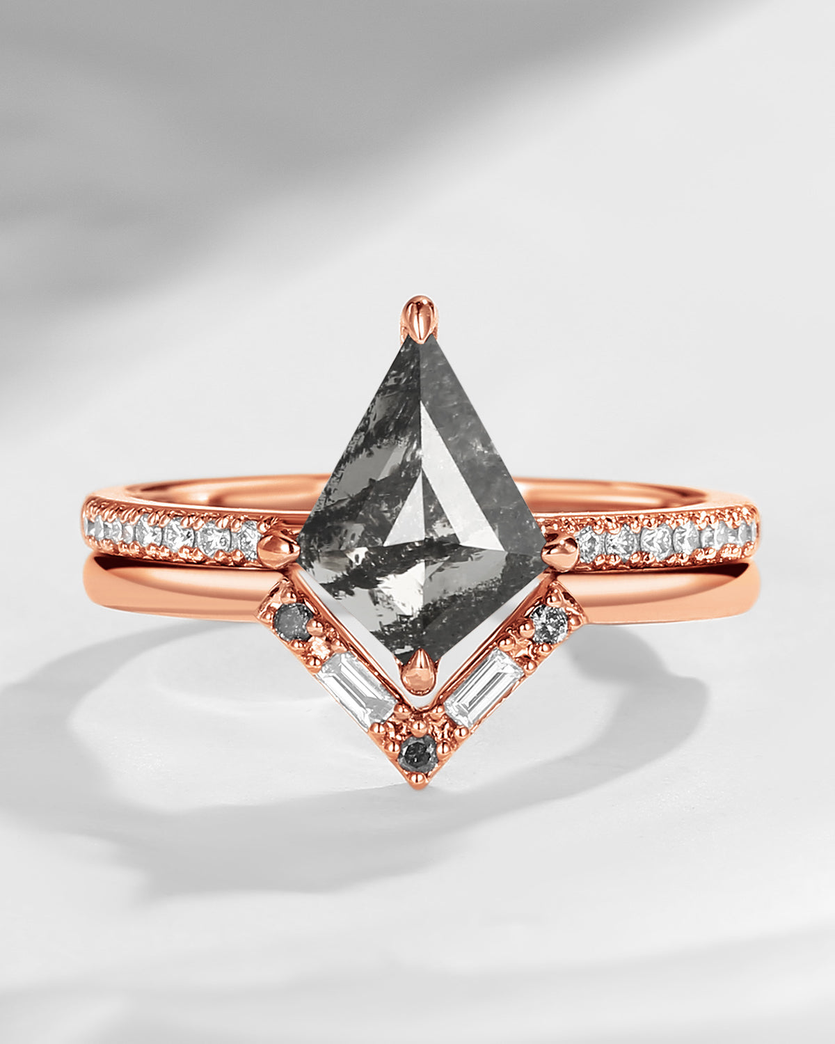 Kite Cut Natural Salt And Pepper Diamond Art Deco Engagement Ring Set 2pcs