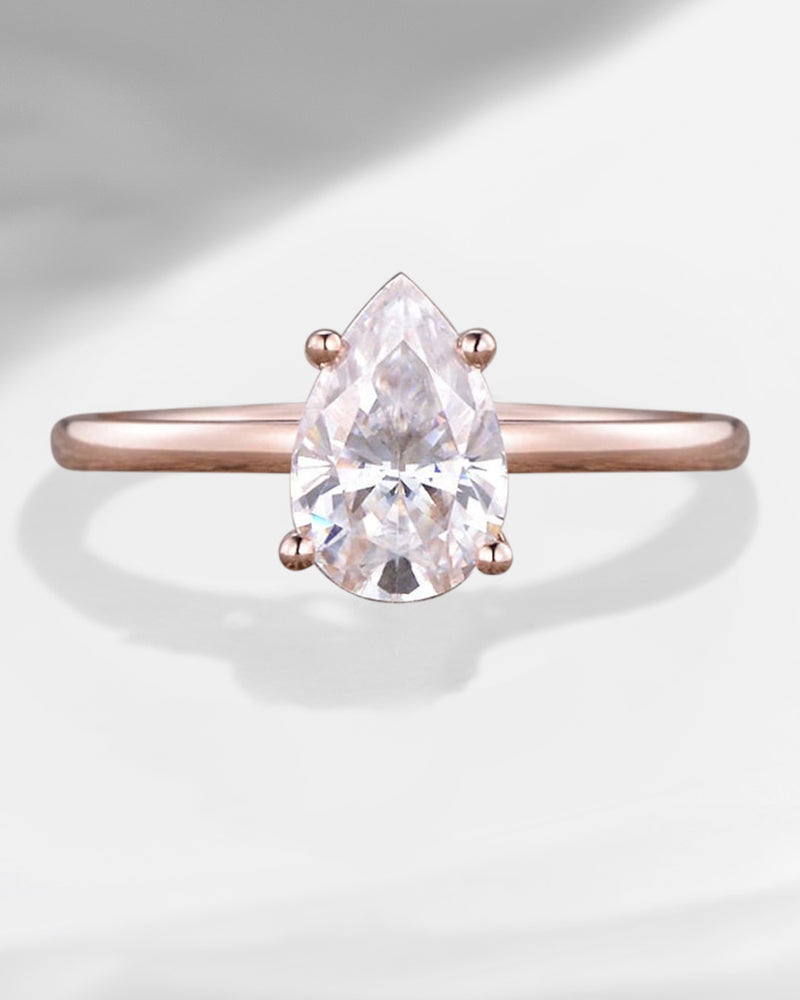 1.0-2.0ct Pear Cut Lab Diamond Solitaire Engagement Ring