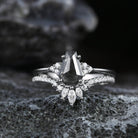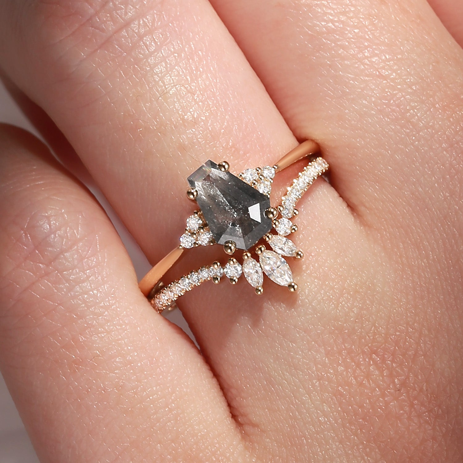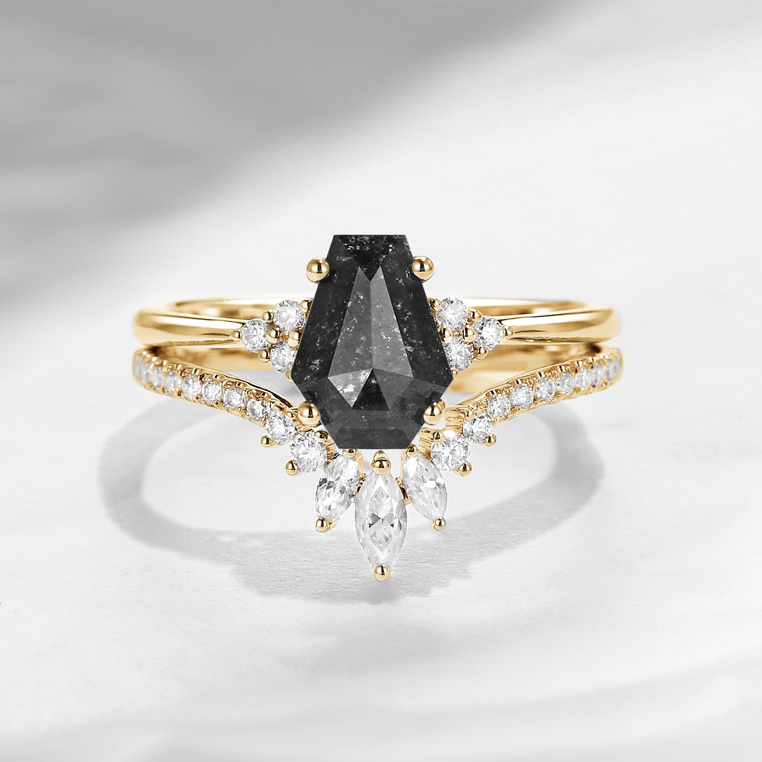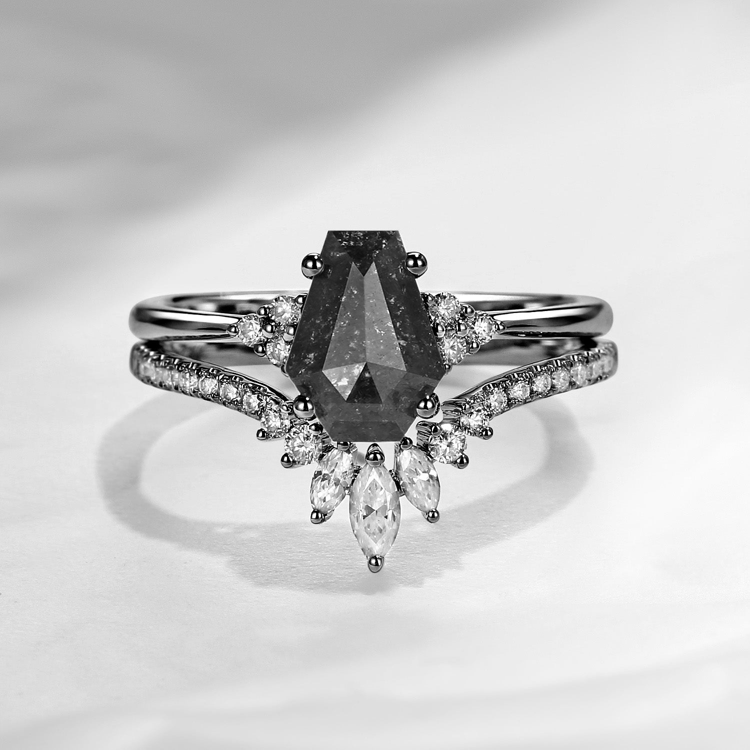 White Gold Engagement Ring Coffin Salt And Pepper Diamond Ring Set 2pcs