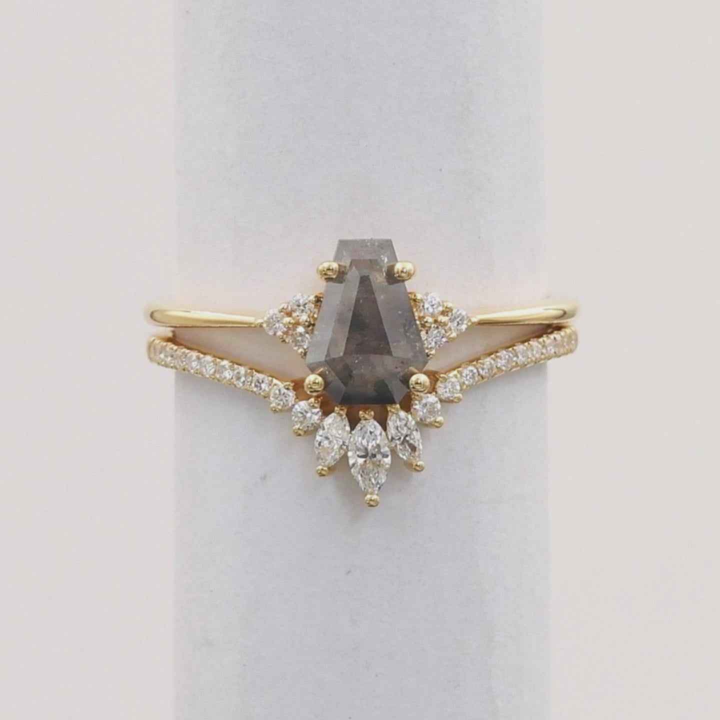 ⟢ Center Stone: Coffin Cut Faceted Natural Salt And Pepper Diamond