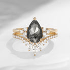Pear Cut Salt and Pepper Diamond Cluster Engagement Ring Set 2pcs - Vivian