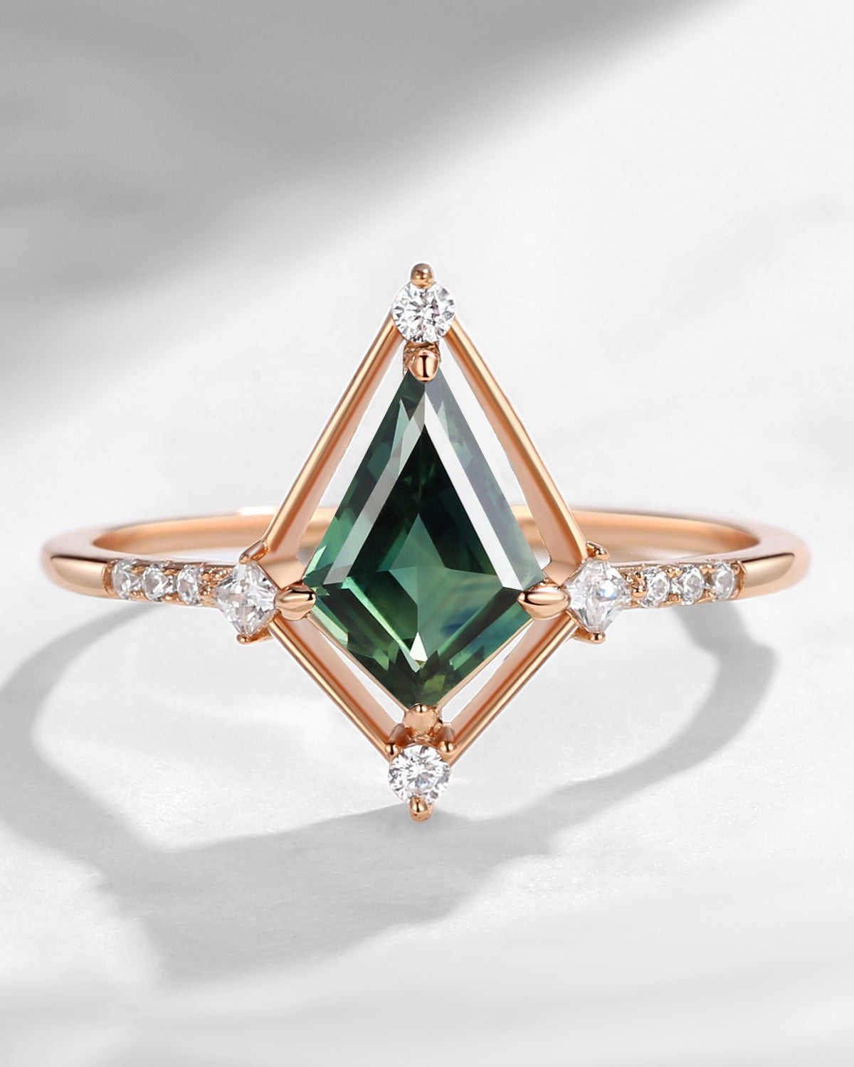 Classic Kite Cut Natural Teal Sapphire Halo Engagement Ring