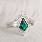 18K  Kite Shaped Lab Emerald Engagement Ring Set 2pcs
