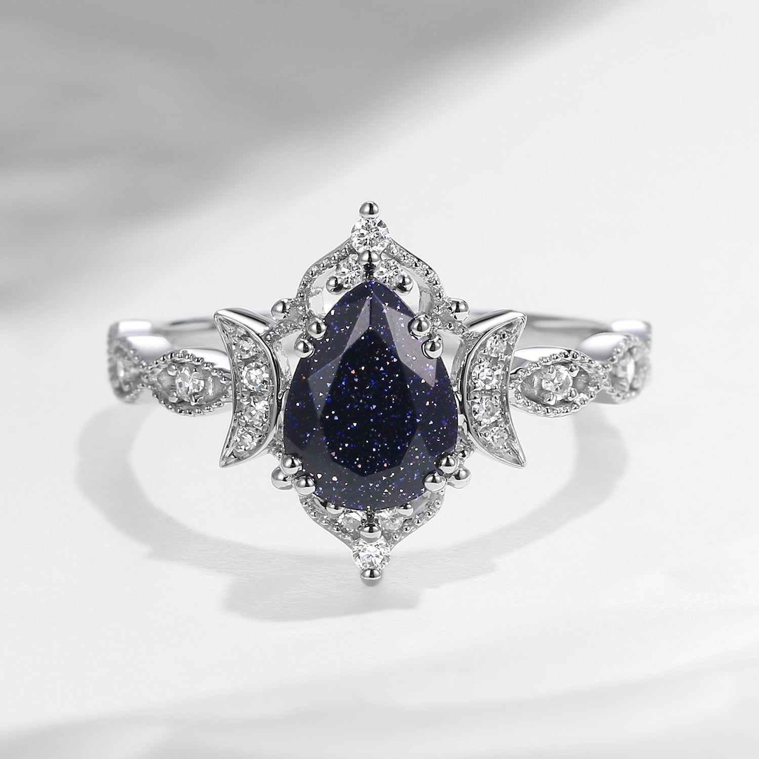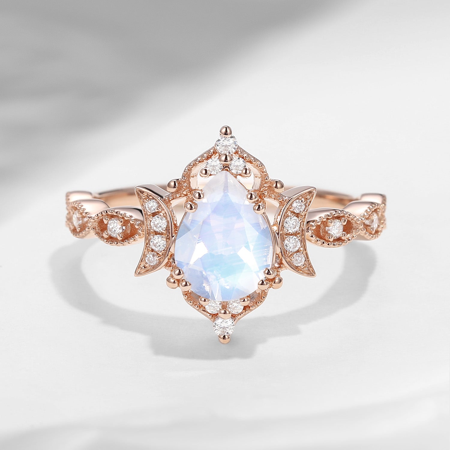Crescent Moon | Antique Pear Cut Black Rutilated Quartz Engagement Ring
