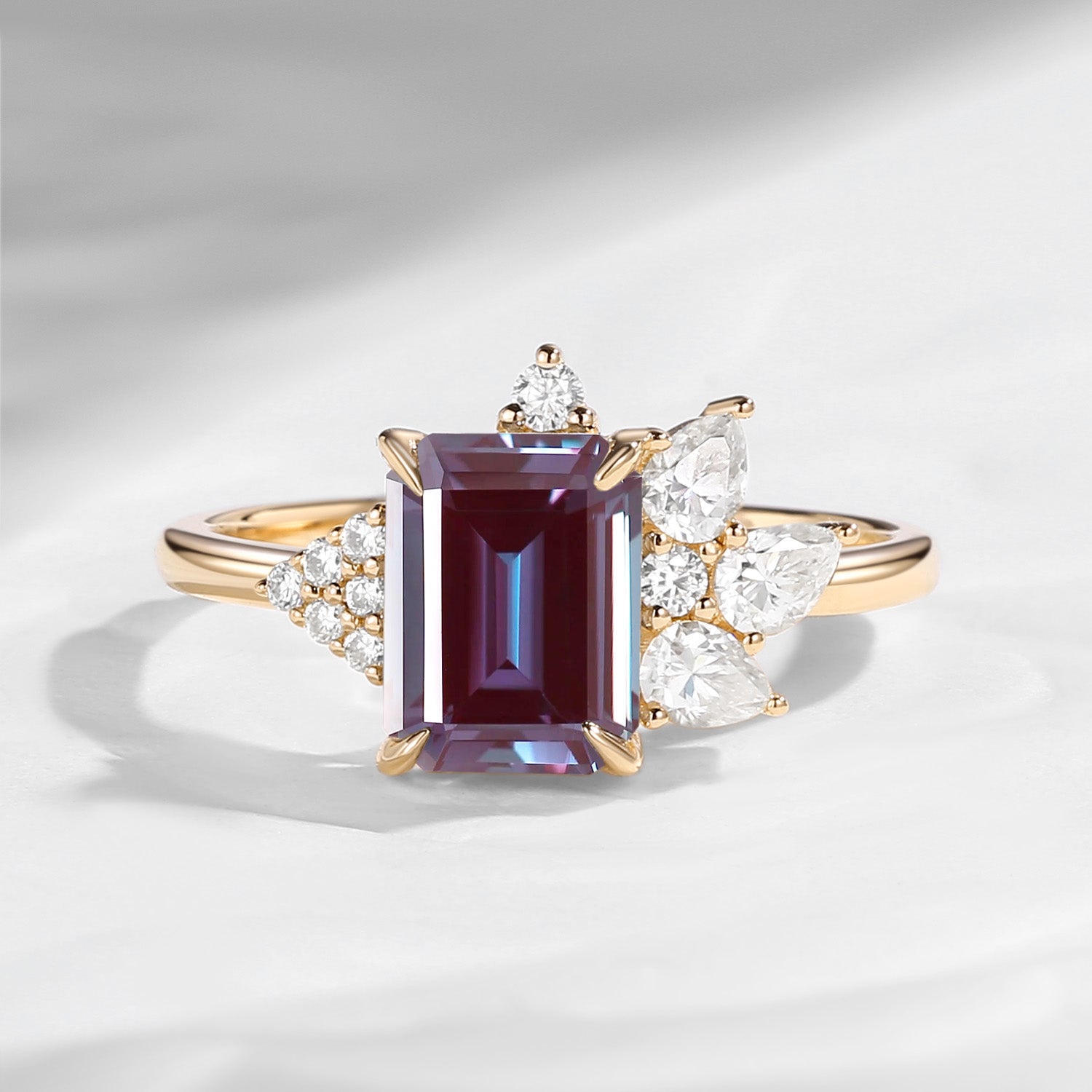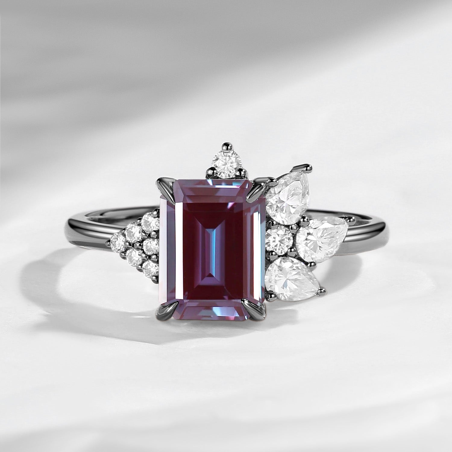 Art Deco Emerald Cut Lab Alexandrite Vintage Cluster Engagement Ring