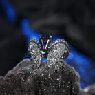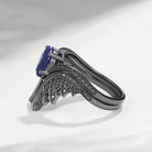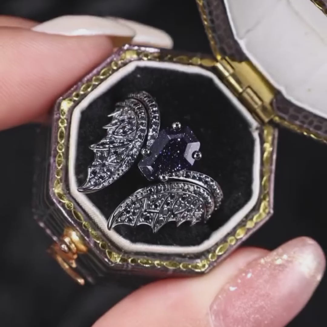 Coffin Cut Blue Sandstone Vintage Black Gold Bridal Set 2pcs - Bat Ring