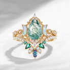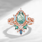 Pear Cut Moss Agate Engagement Ring Infinity Ring Vintage Style Cluster Moon Wedding Ring Set 2pcs