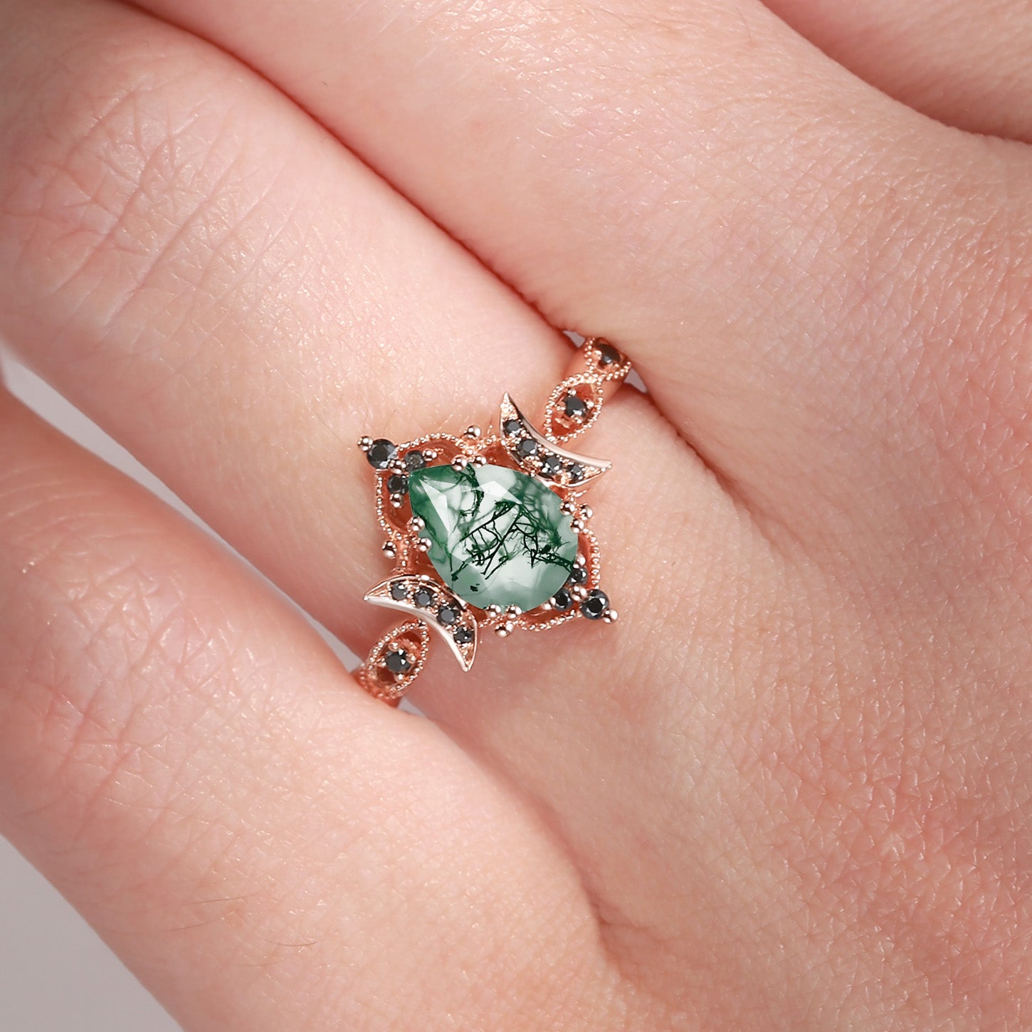 1.5ct Pear Cut Unique Moss Agate Engagement Ring Gemstone Engagement Ring- Eclipse