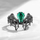 Lab Emerald Coffin Cut Vintage Inspired Black Gold Engagement Ring - Bat Ring