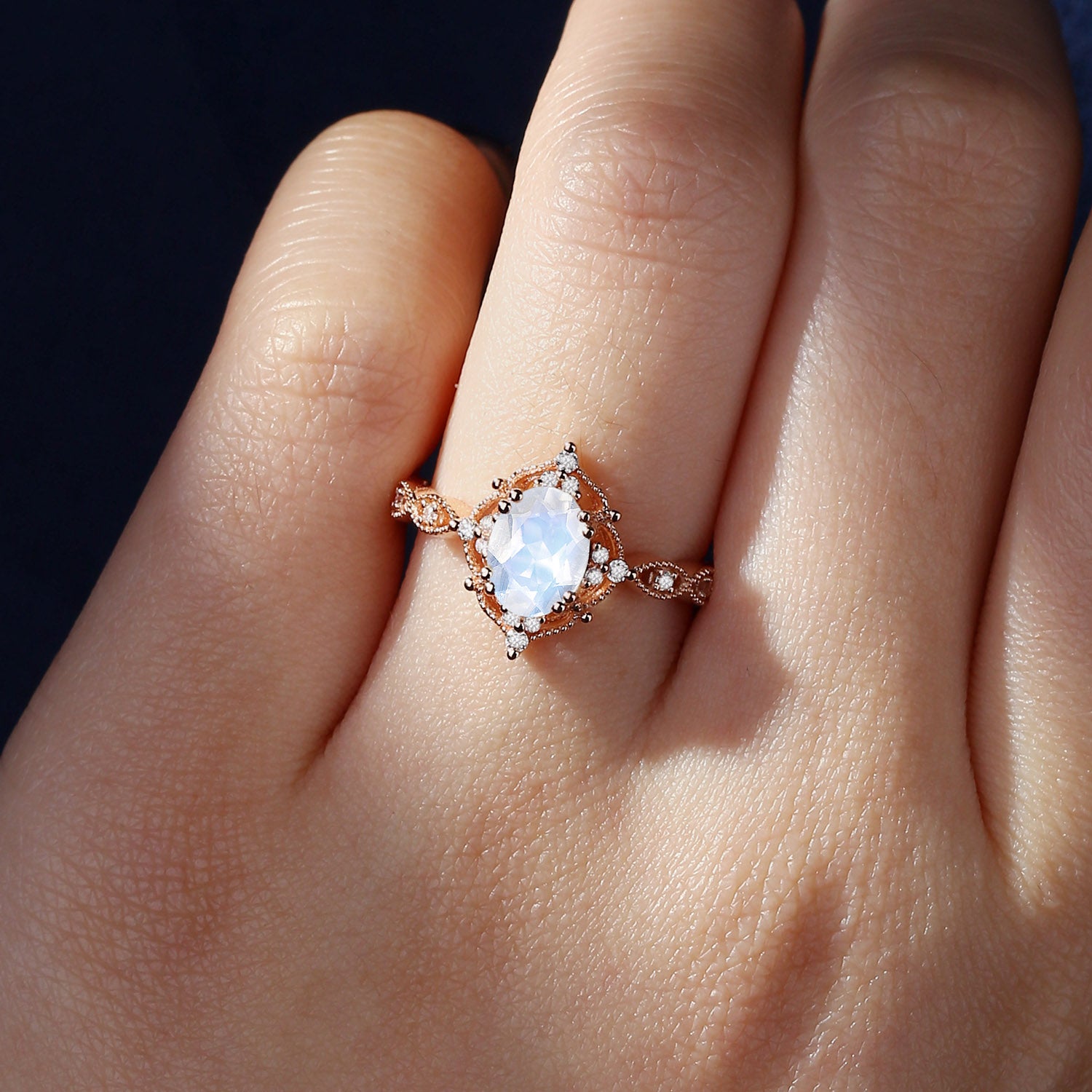 Oval Moonstone Vintage Inspired Engagement Ring 18K