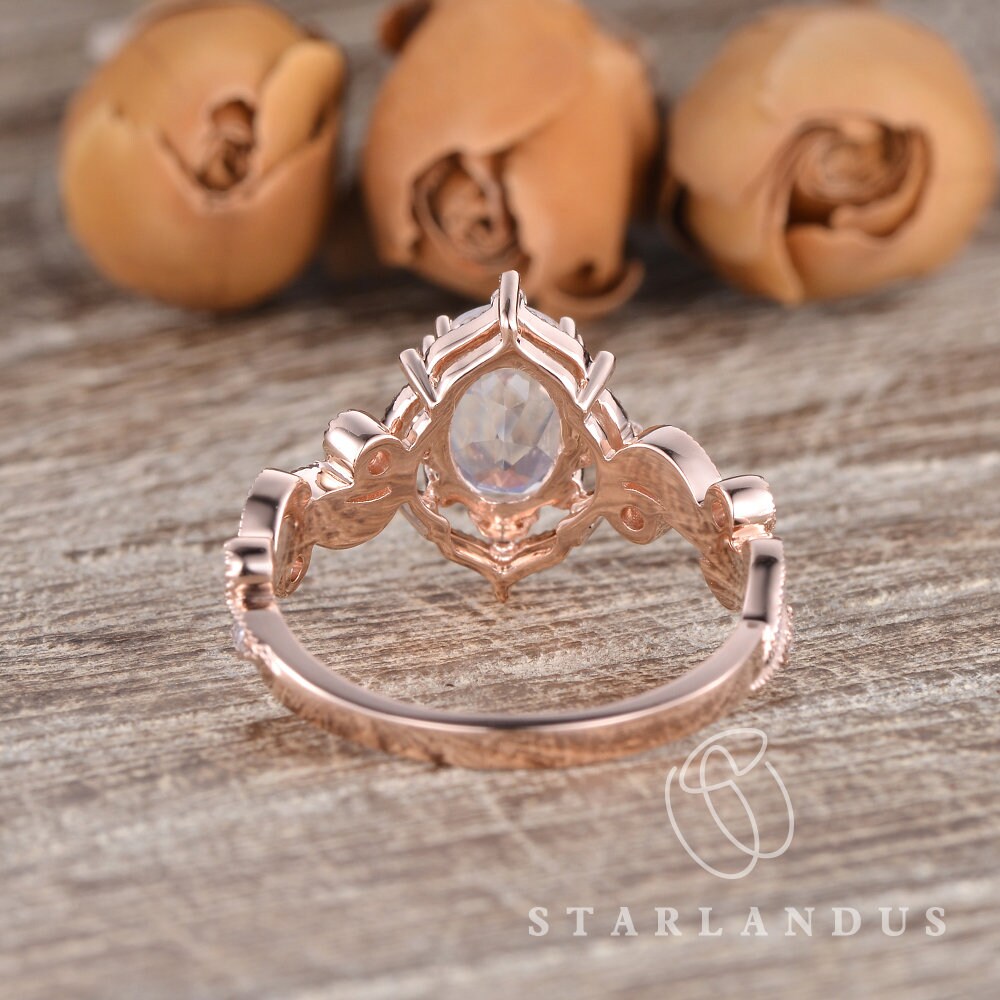 Flower Wedding Ring Fairyland Moonstone Engagement Ring Rose Gold Art Deco Petal Ring Milgrain Vintage Jewelry