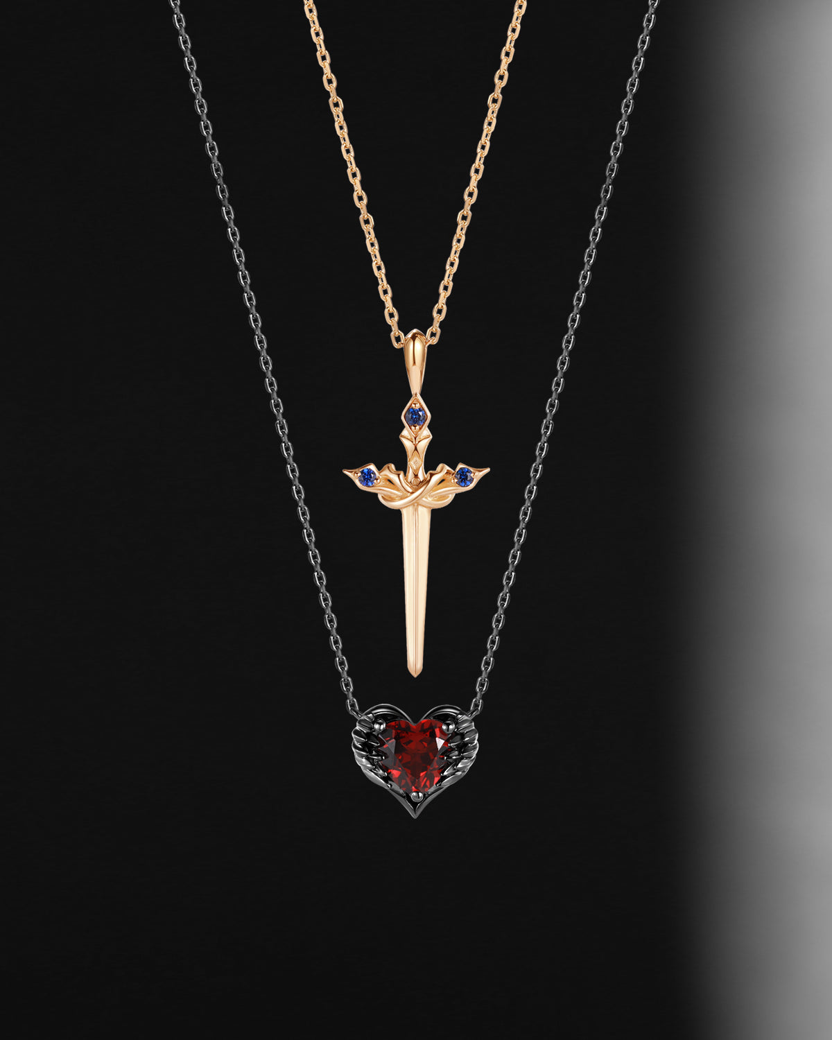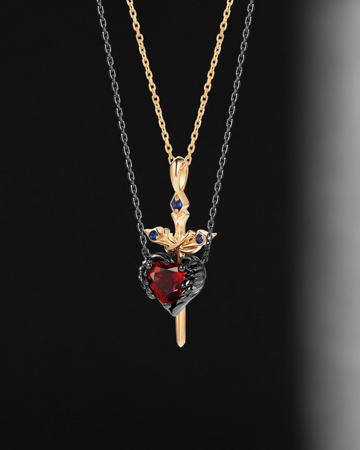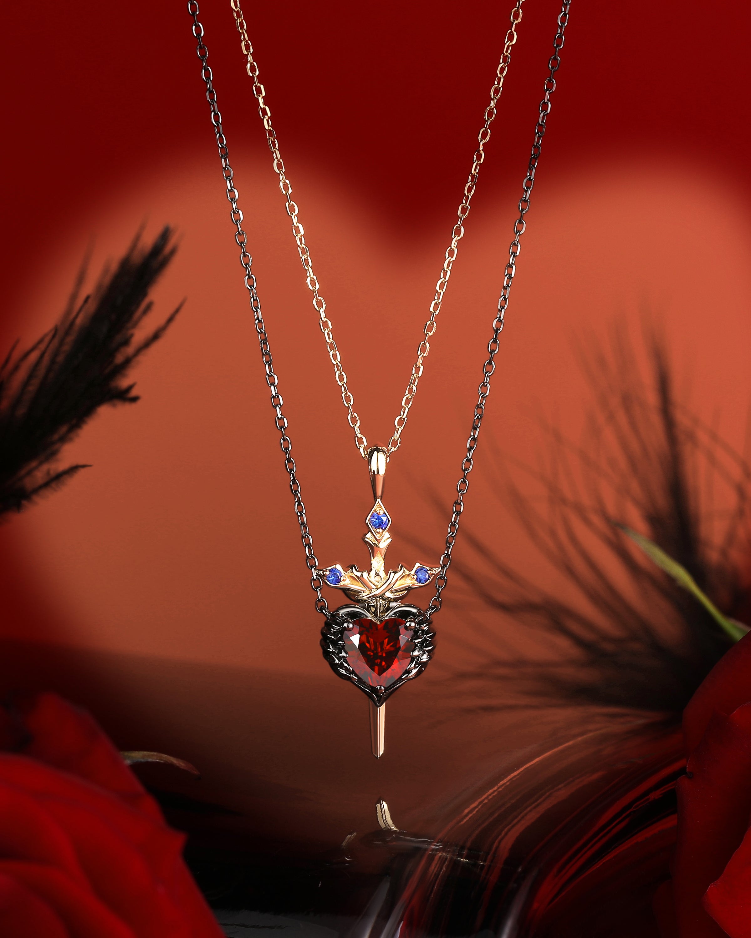 Lab Ruby Heart Cut Couple Necklaces Set 2pcs - Cupid's Arrow