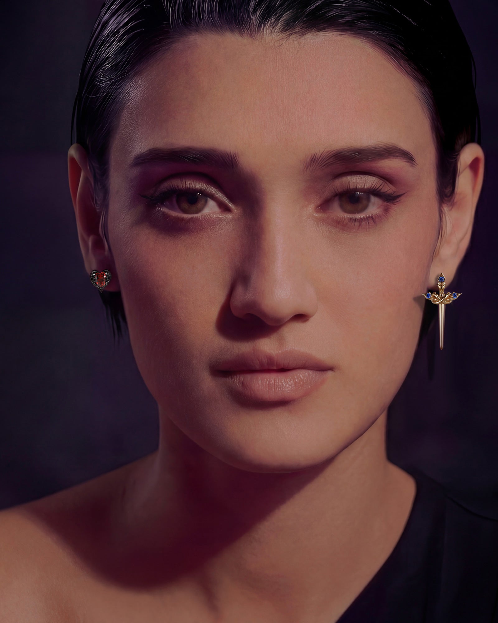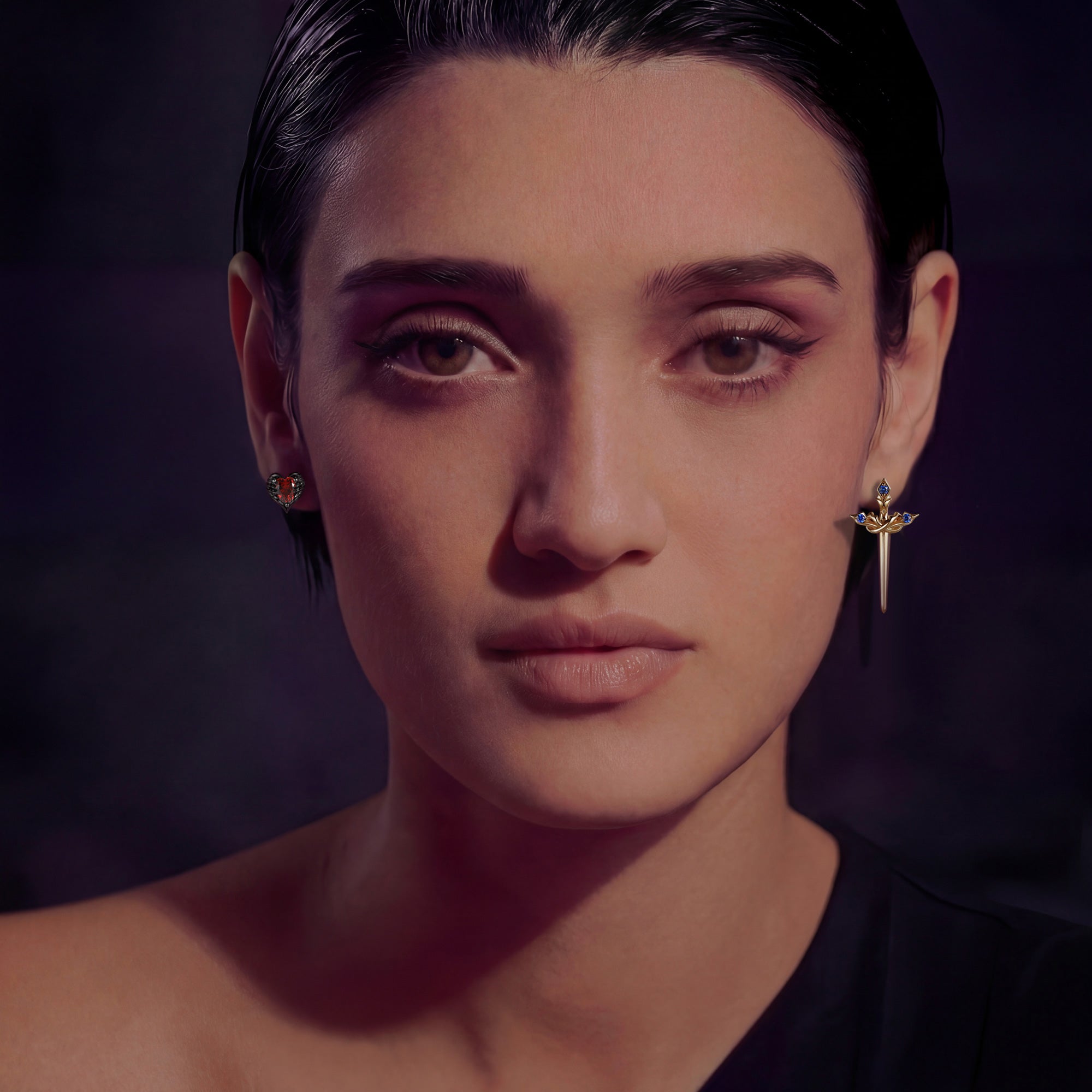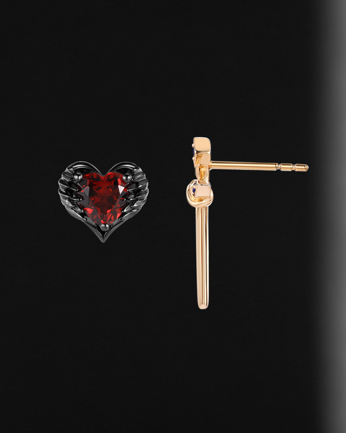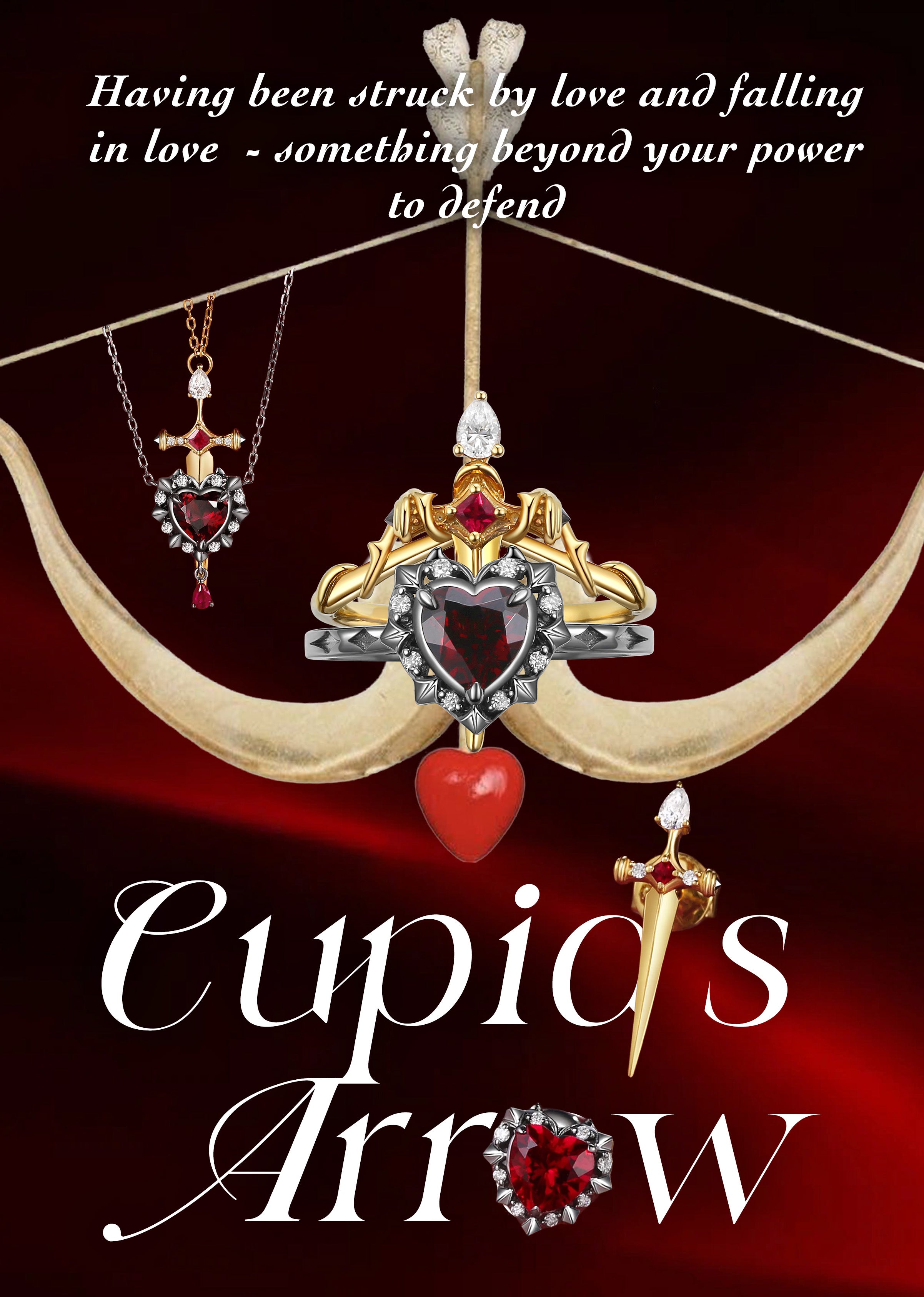 Lab Ruby Heart Shaped And Sword Earrings - Cupid's Arrow
