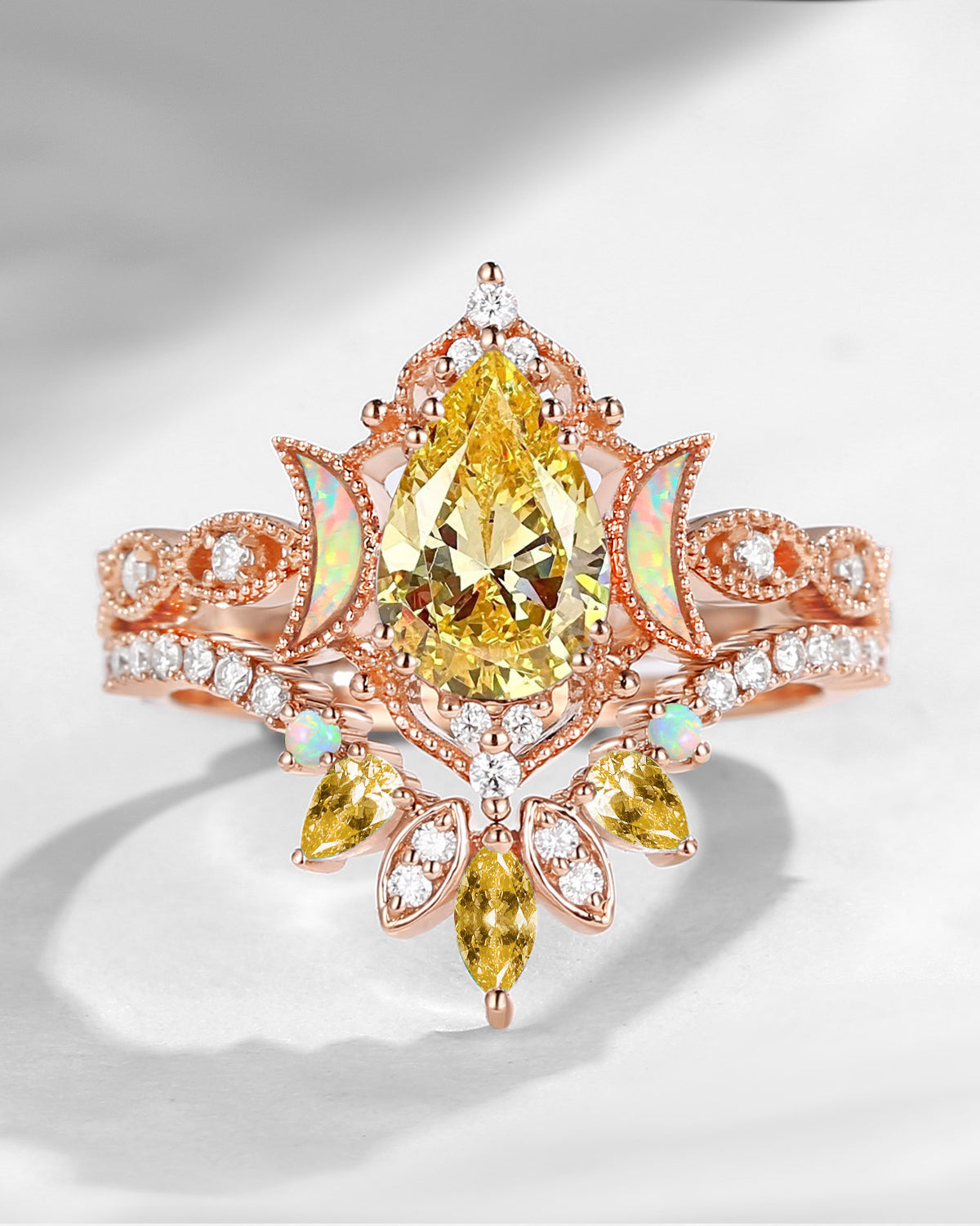 Crescent Moon | Vintage Pear Cut Moonstone Engagement Ring 2pcs - Luna