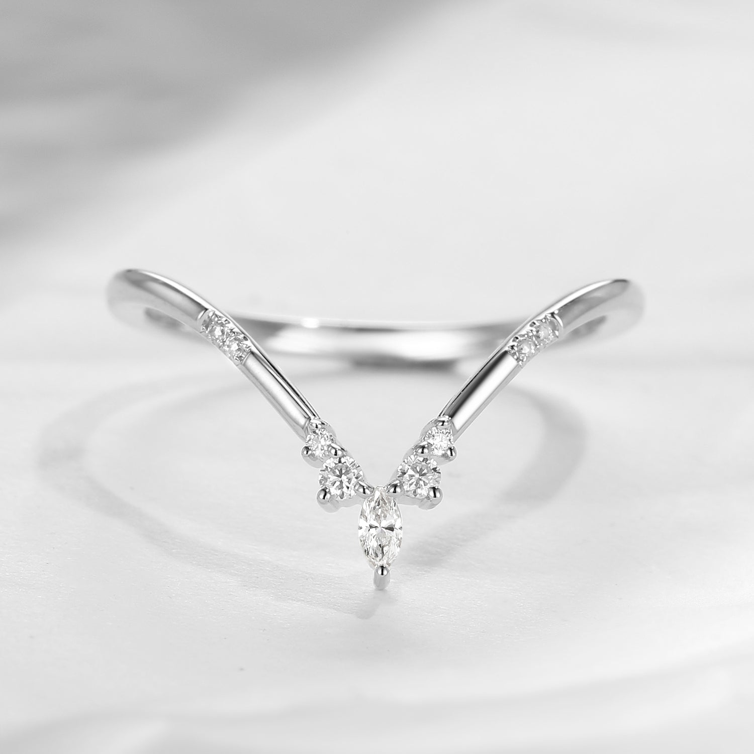 Dainty Custom Fit Rose Gold Wedding Band Women Marquise Moissanite Wedding Band Cluster Ring Vintage Inspired Ring Promise Ring Chevron Ring