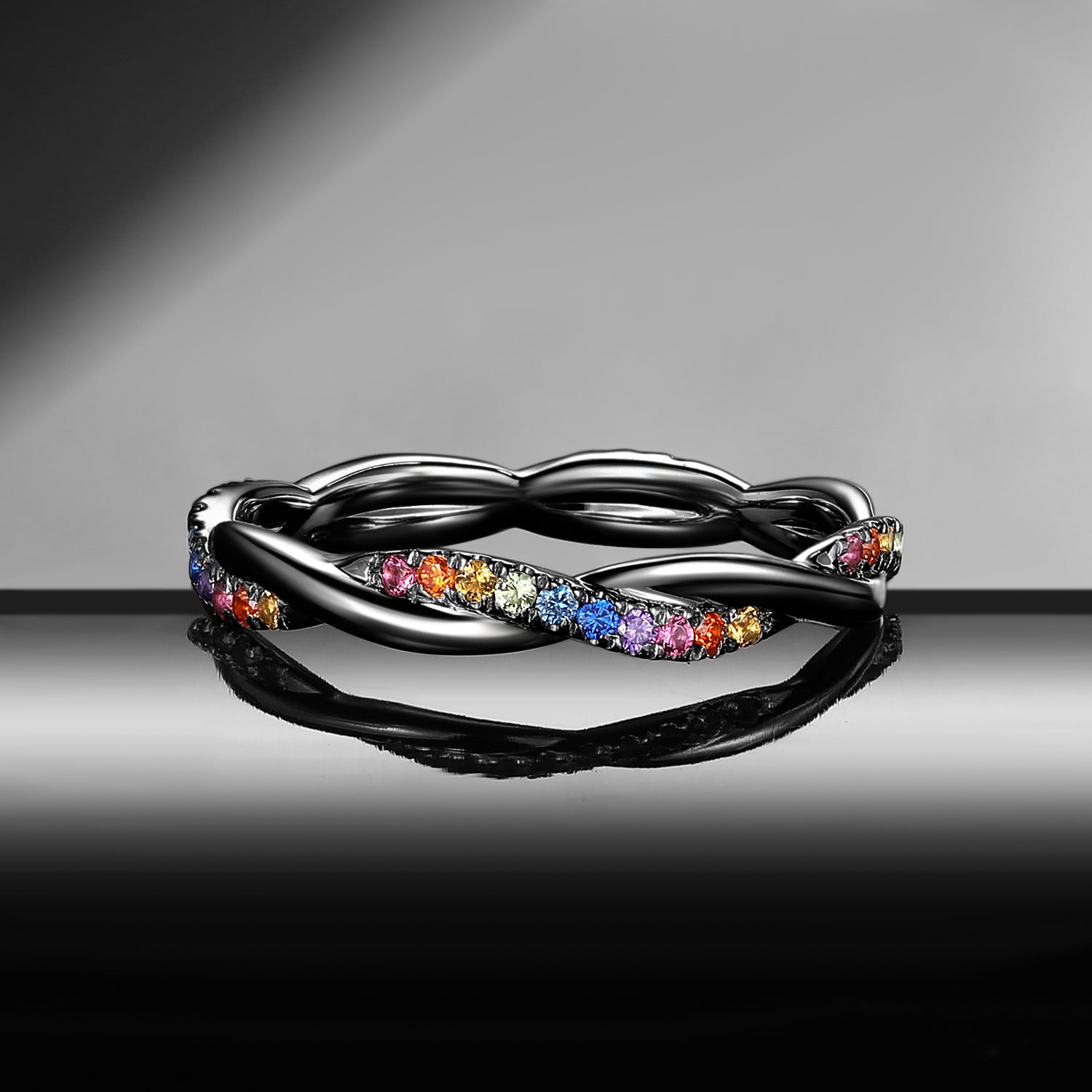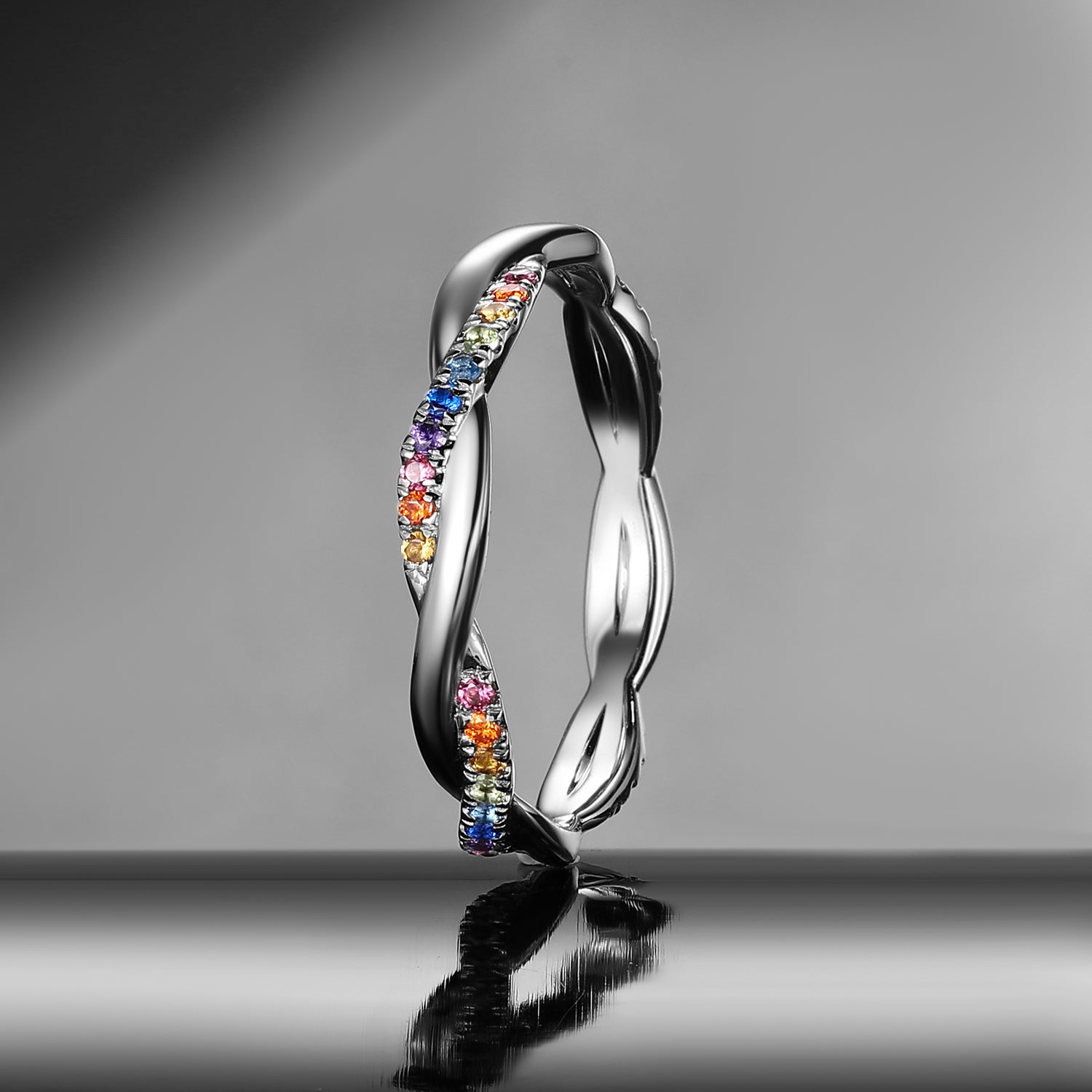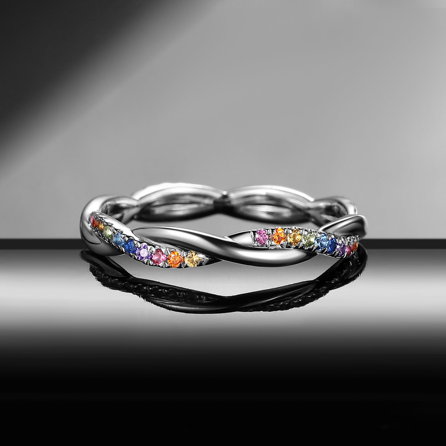 Full Eternity Natural Rainbow Sapphire Infinity Stacking Ring