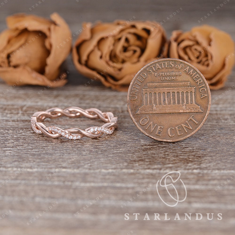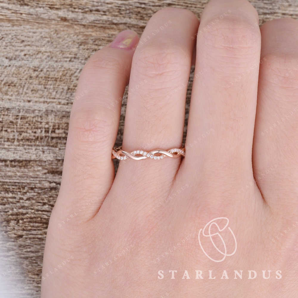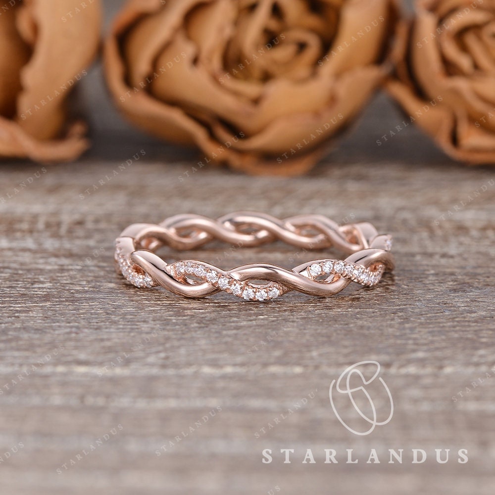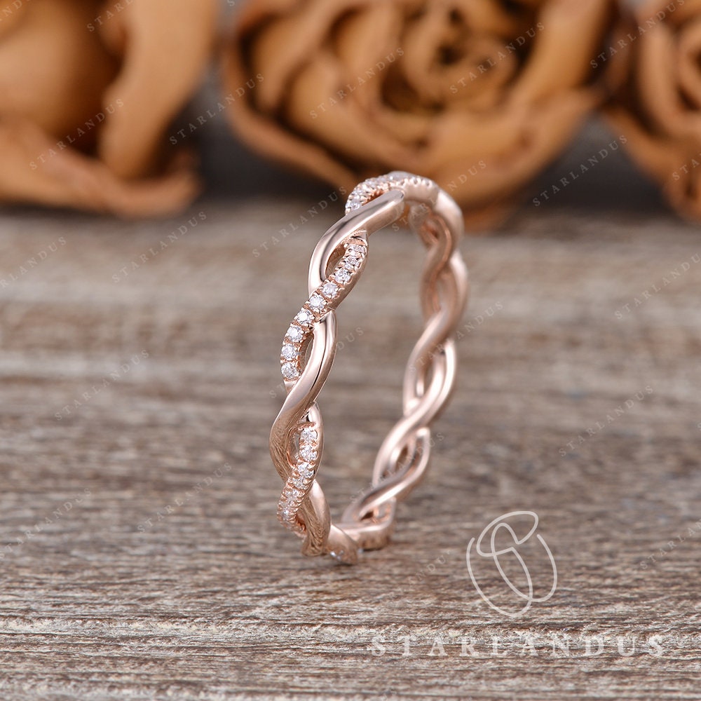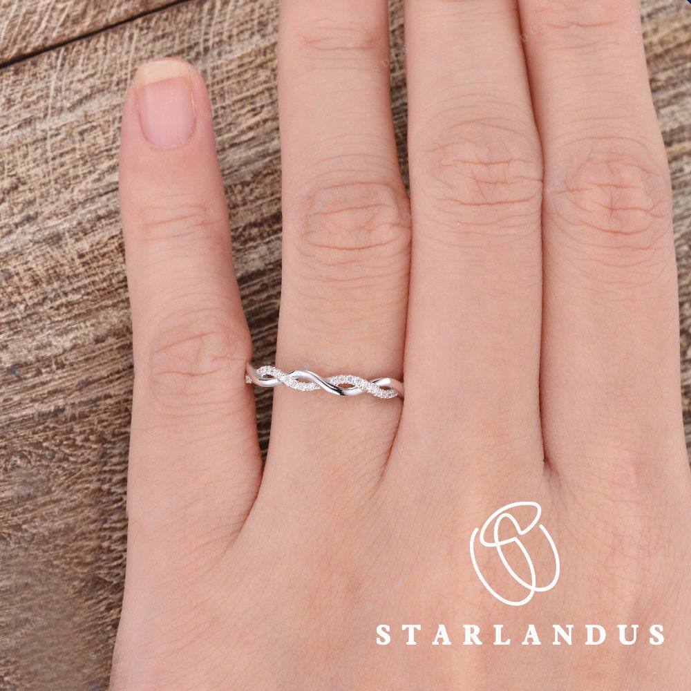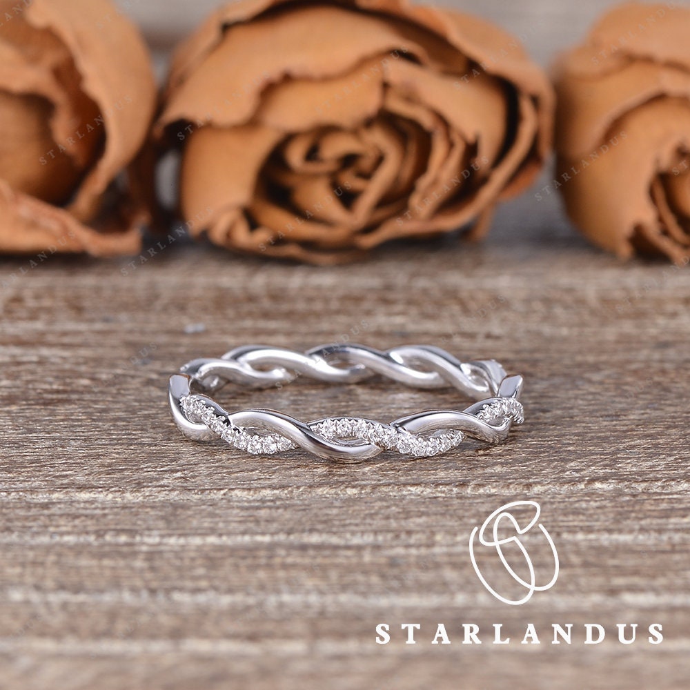 Infinity Wedding Band White Gold Twisted Ring Stacking Ring Full Eternity White Gold Bridal Ring Free Engraving Ring