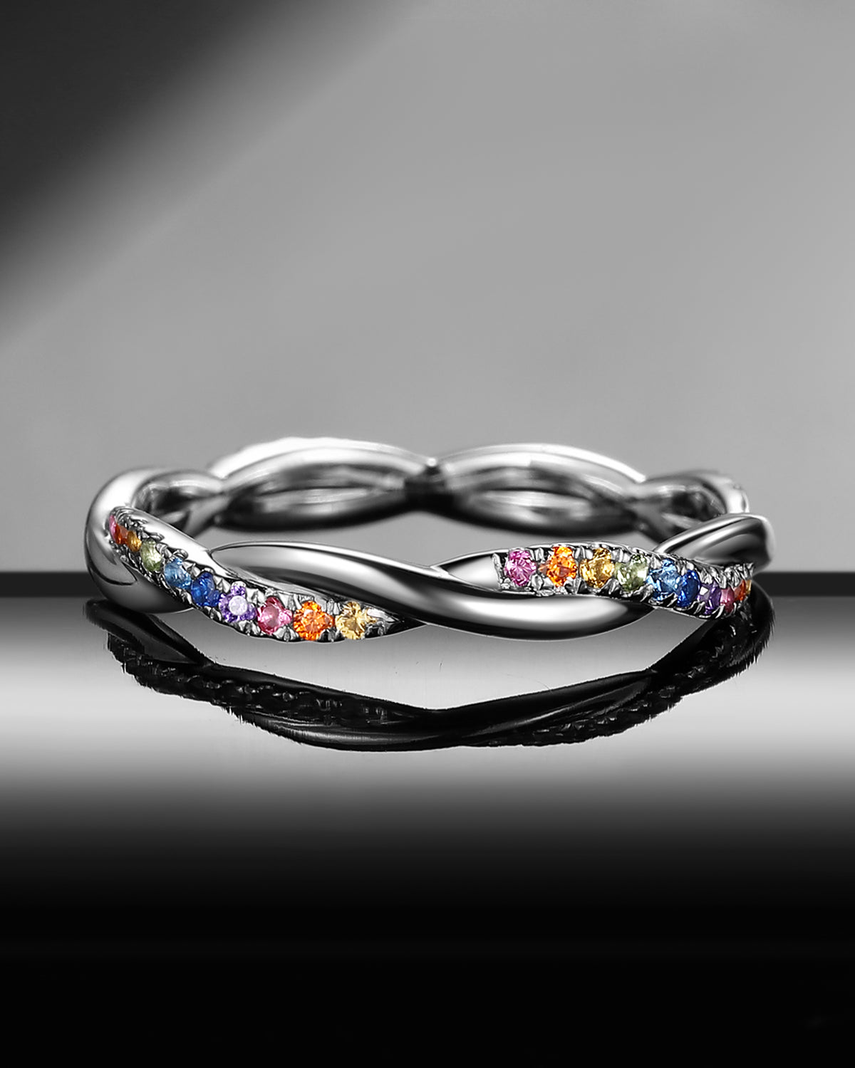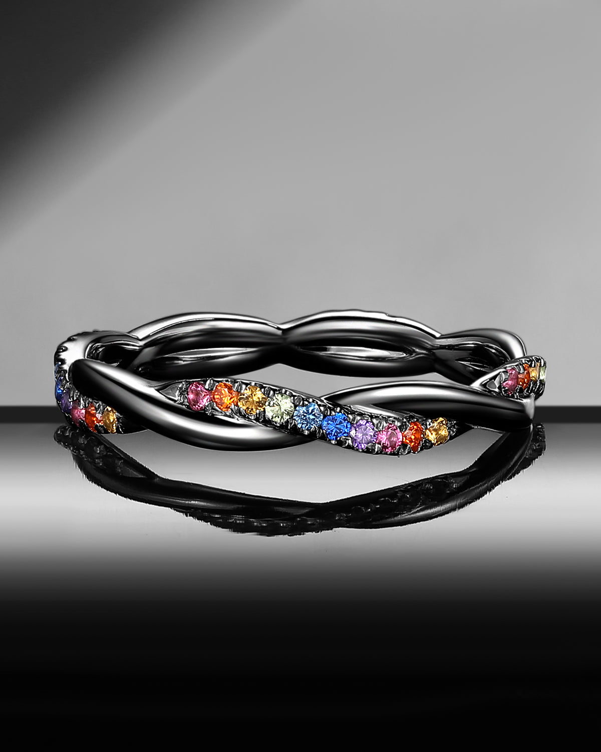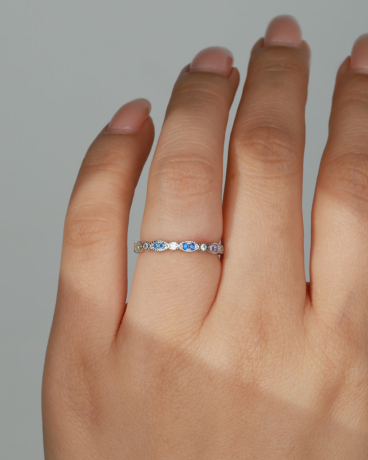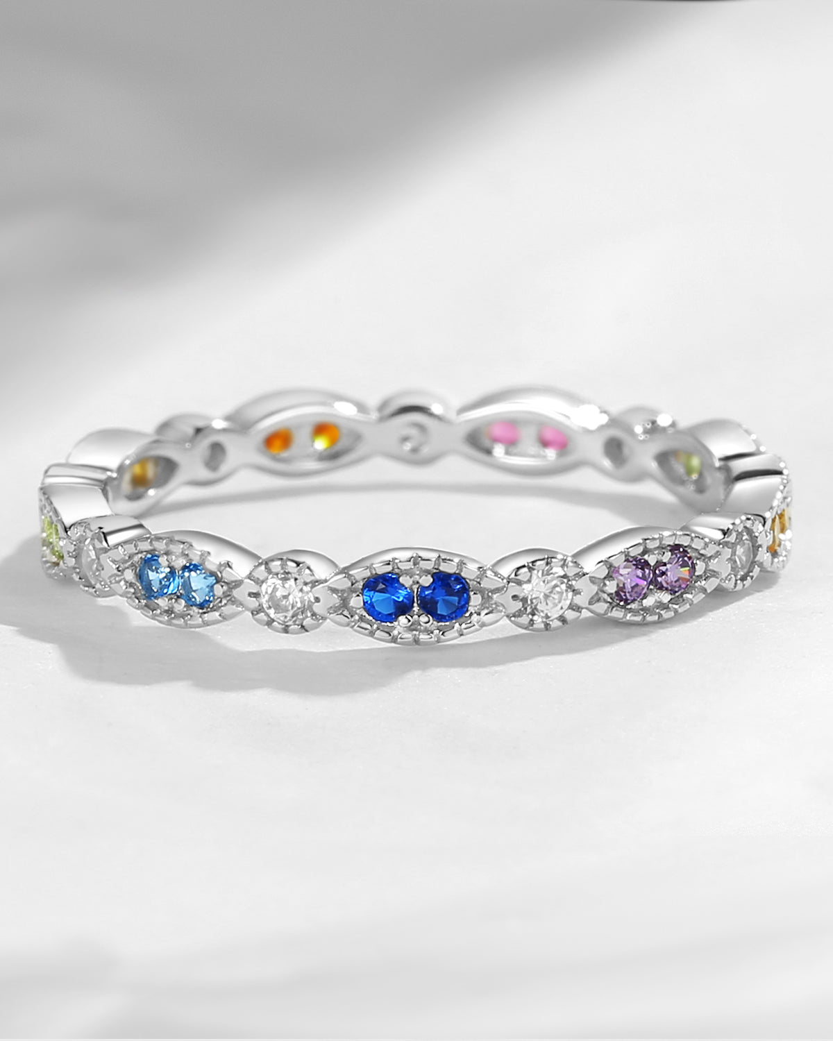 Full Eternity Natural Rainbow Sapphire Infinity Stacking Ring