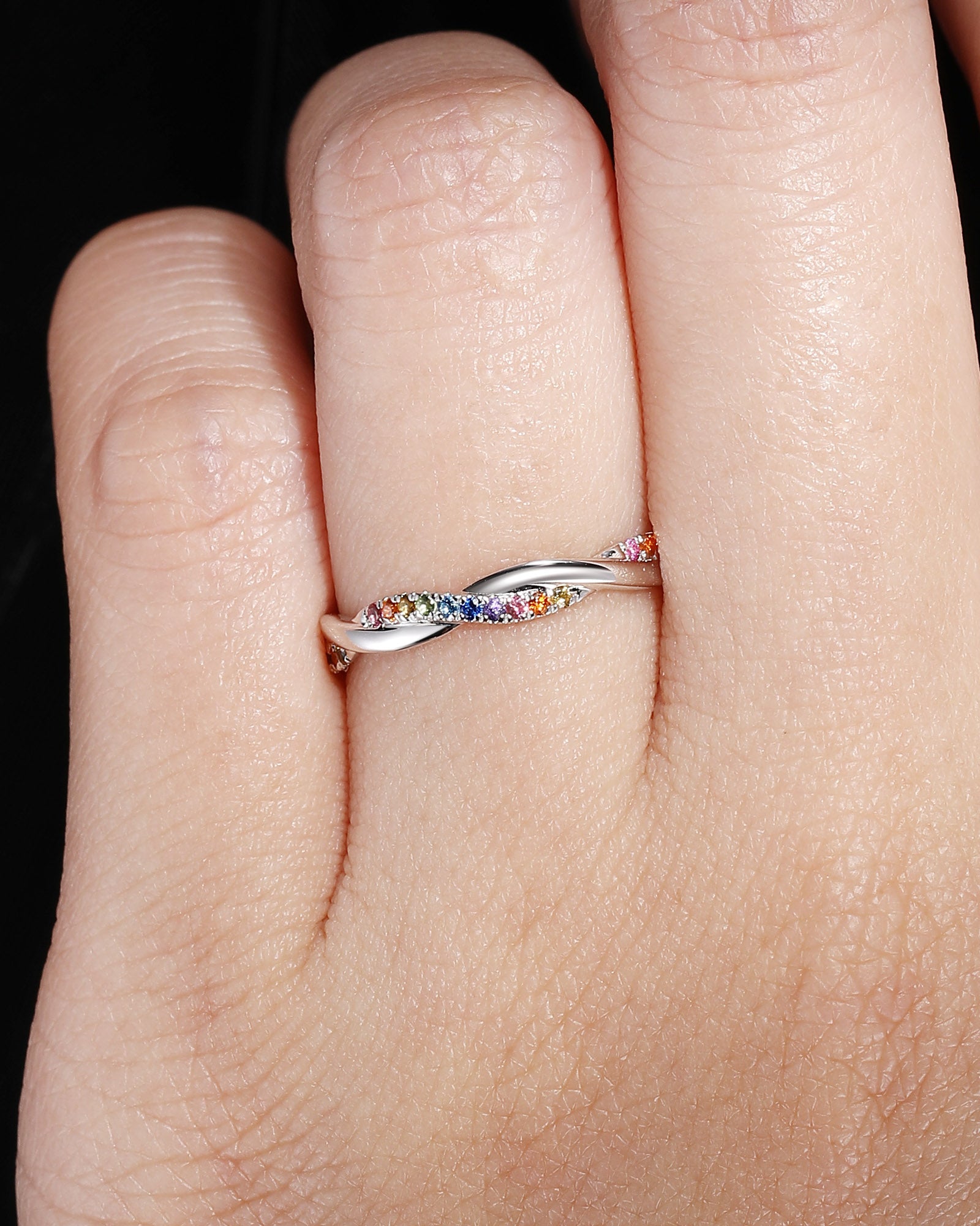 Natural Rainbow Sapphire Infinity Rainbow Stacking Ring