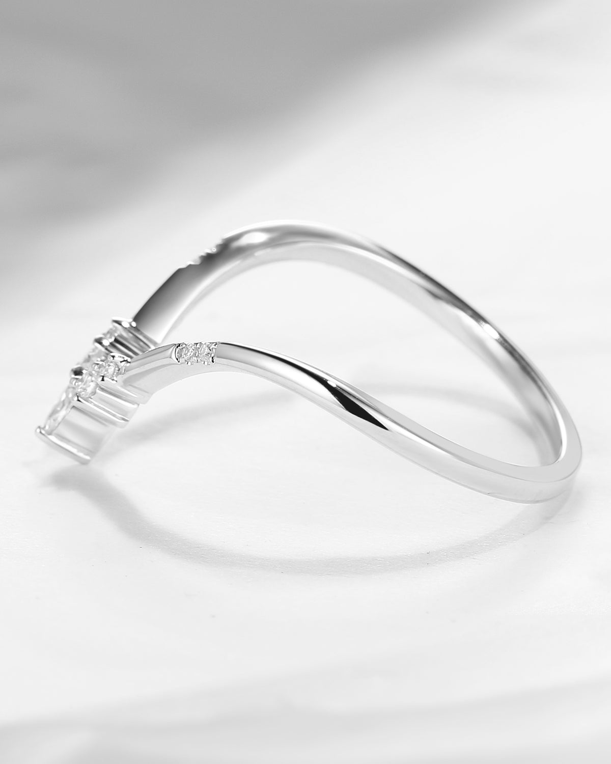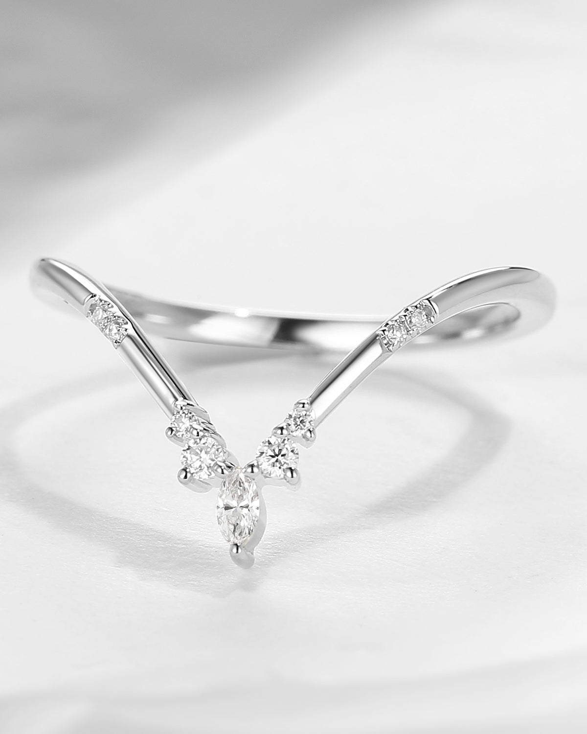 Marquise Cut Chevron Ring Women Curved Wedding Band