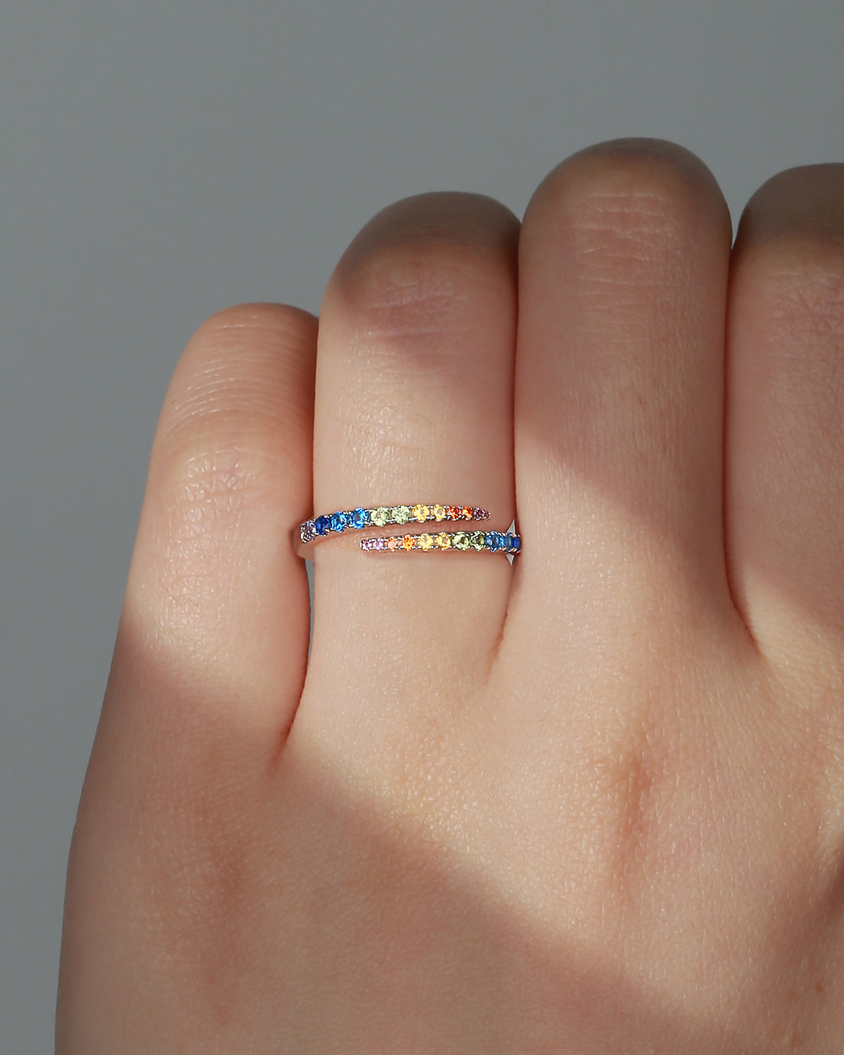 Natural Rainbow Sapphire Open Hug Ring