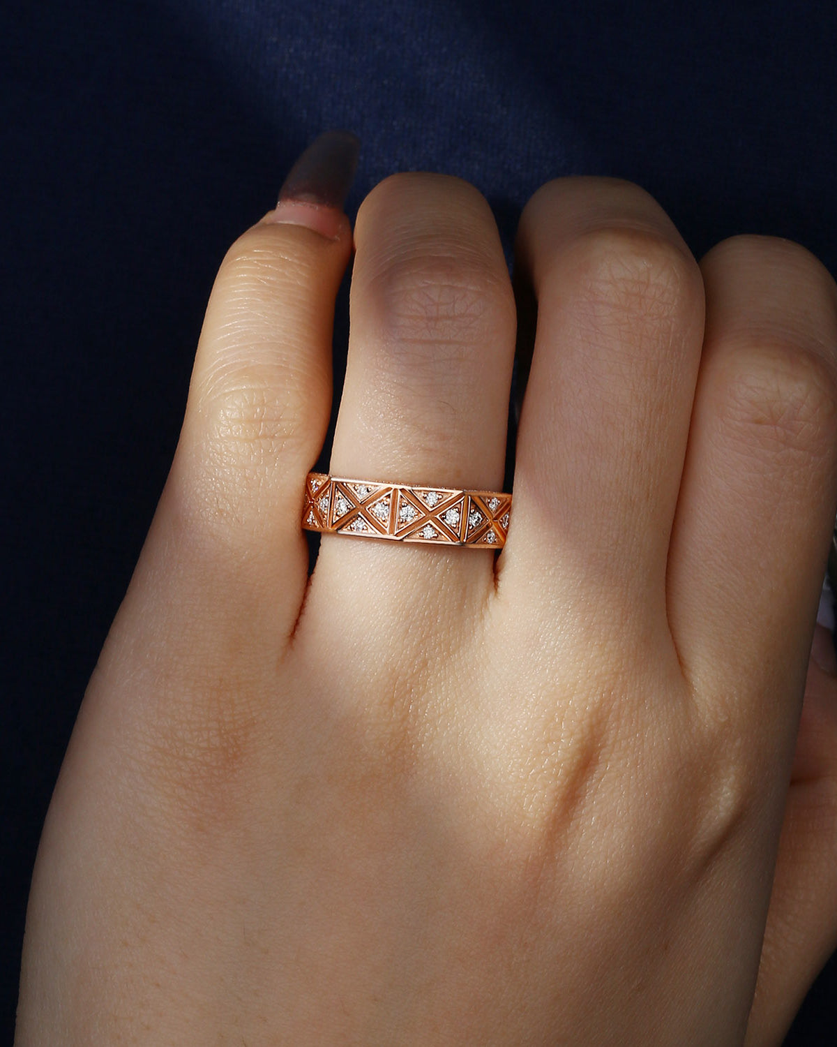 Dainty Fit Rose Gold Chevron Wedding Band