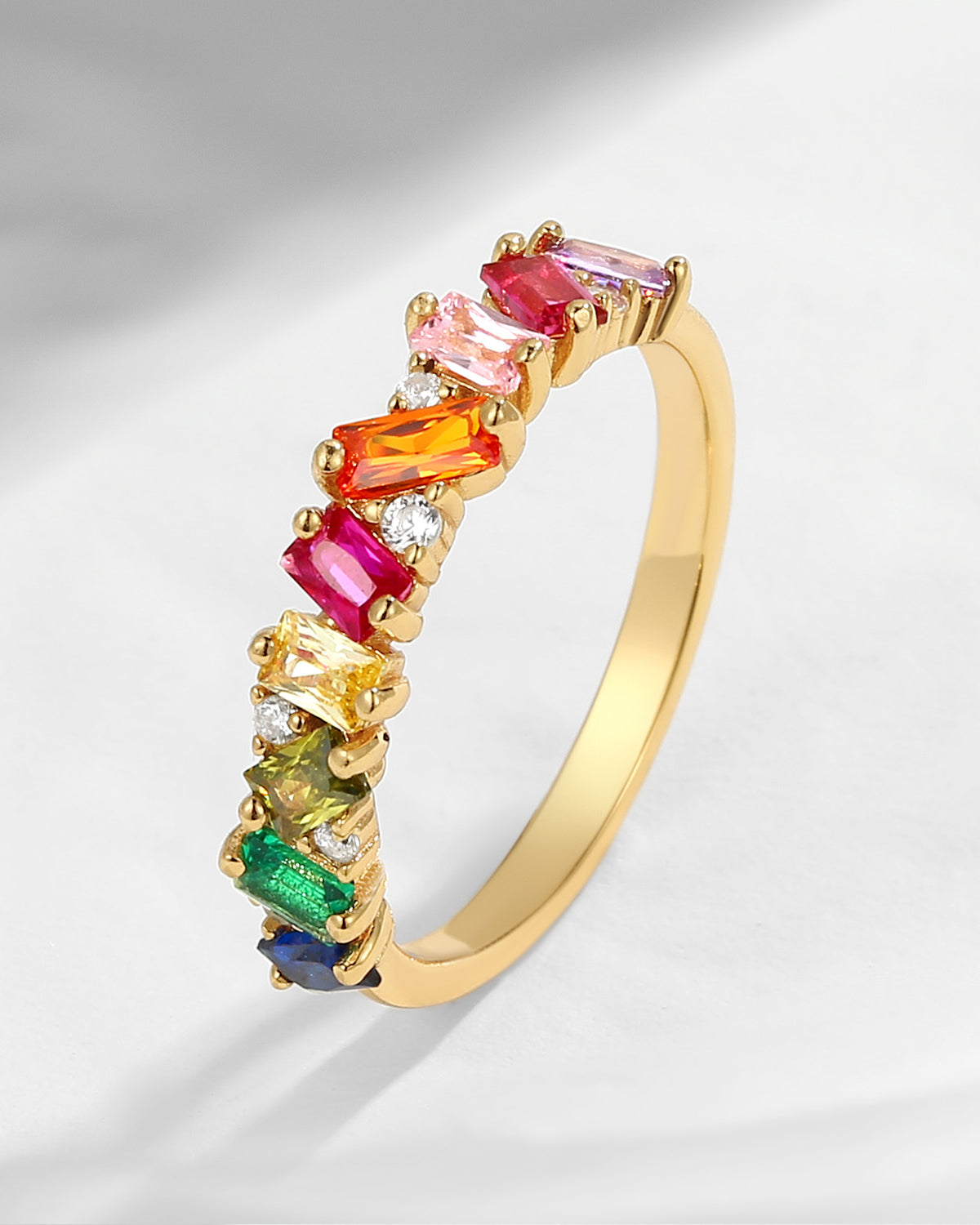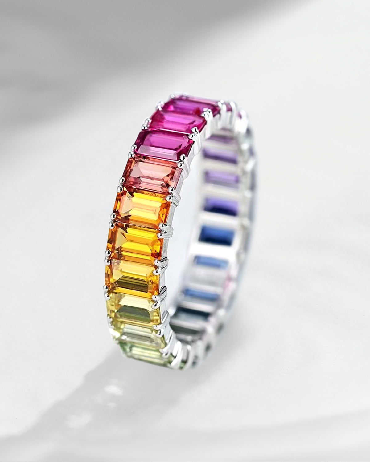 Full Eternity Baguette Cut Pave Chunky Rainbow Ring