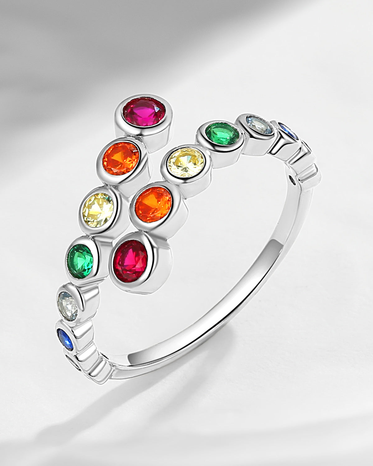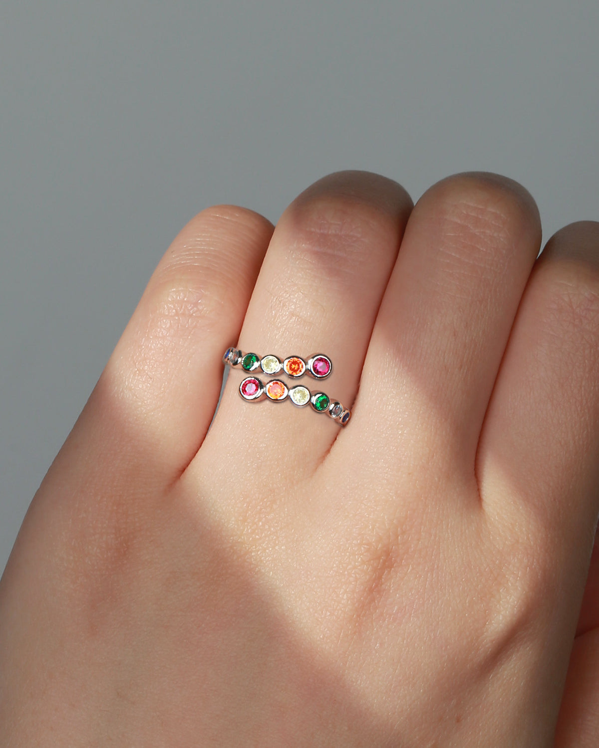 Natural Rainbow Sapphire Open Bezel Hug Ring