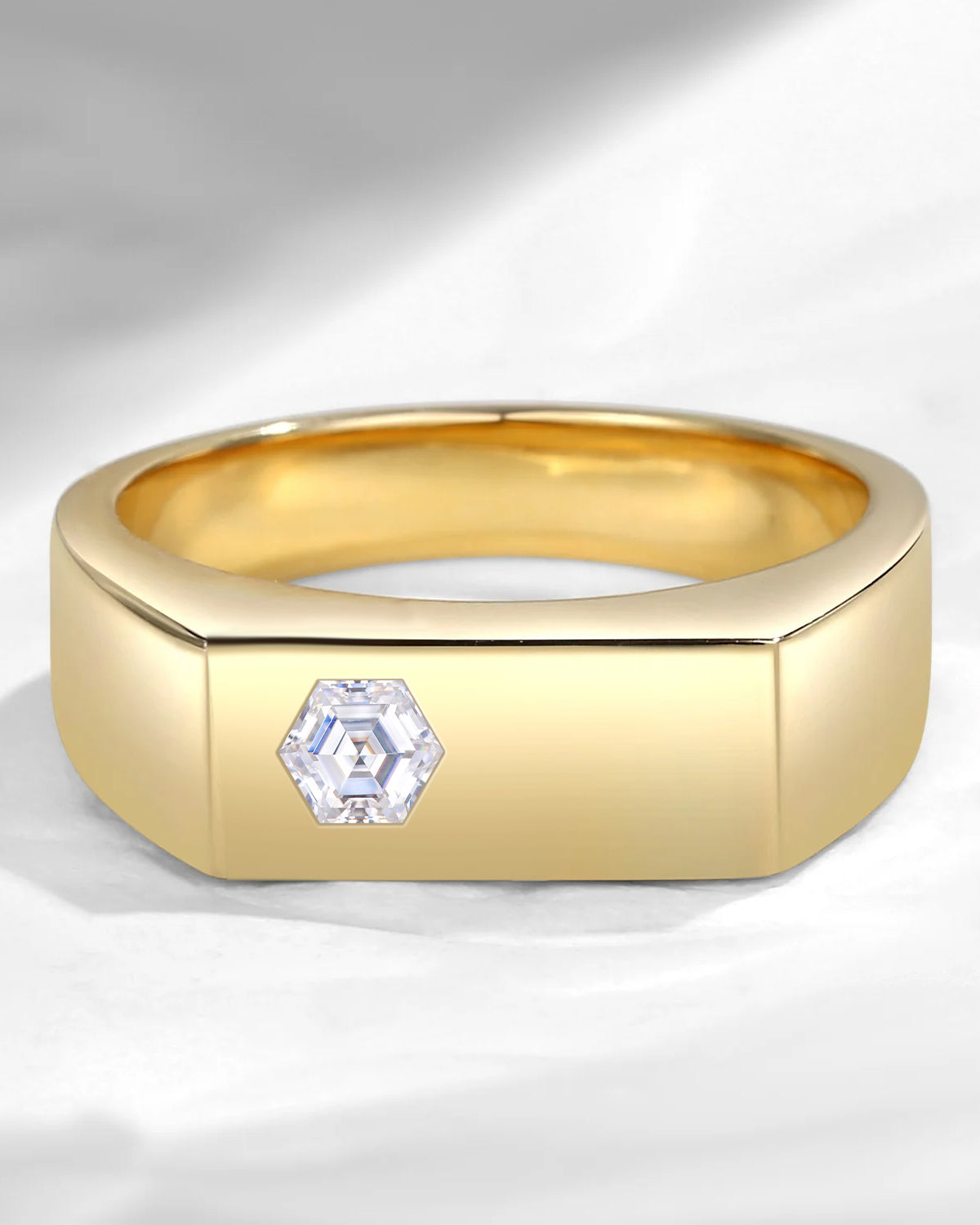 Unique Hexagon Moissanite Black Gold Wedding Band For Men