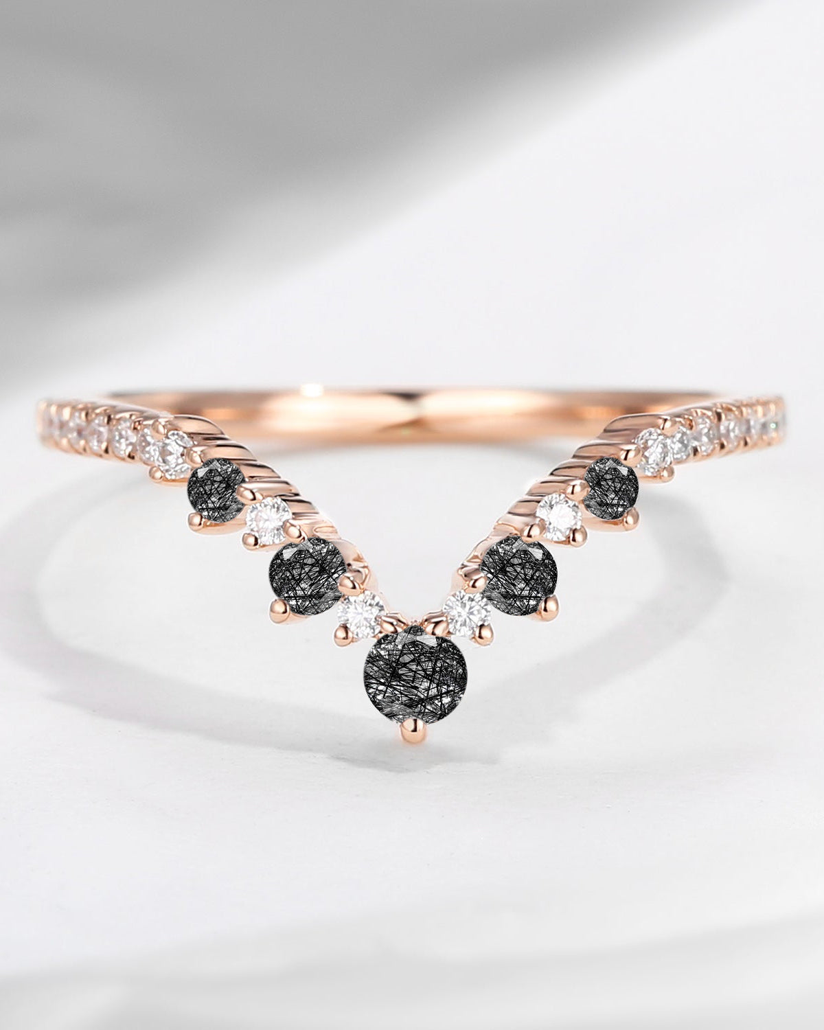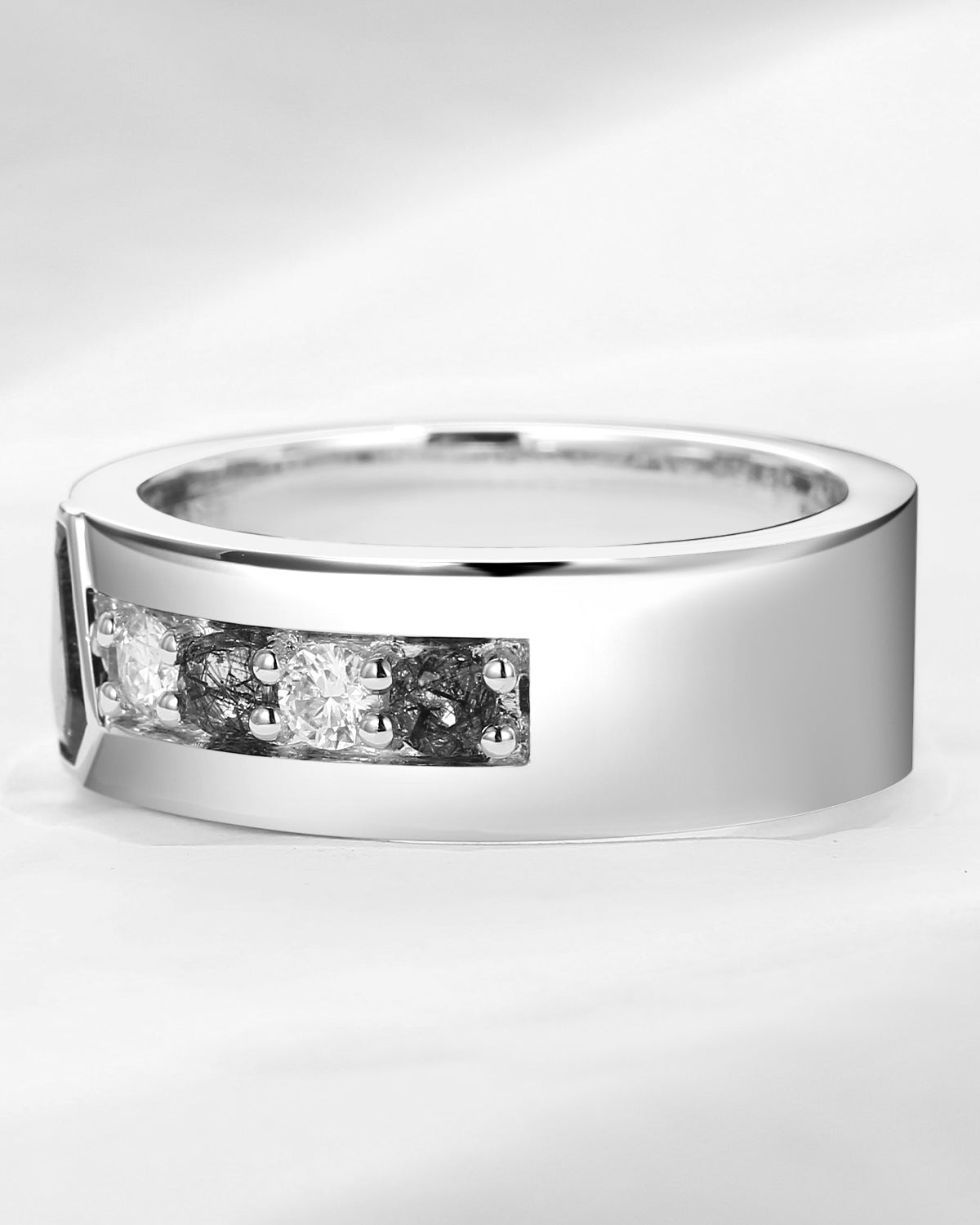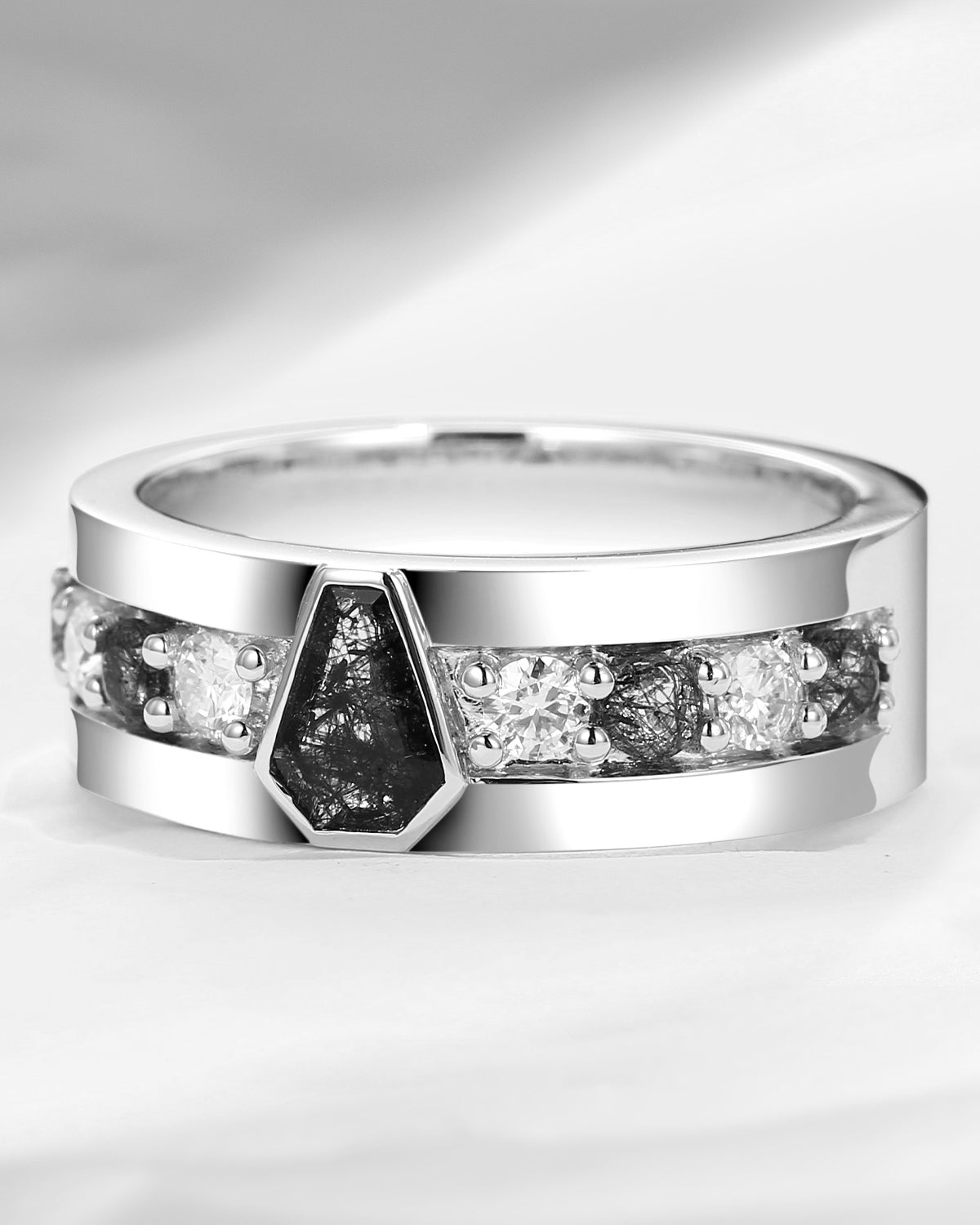 Unique Coffin Cut Black Rutilated Quartz Wedding Band For Men - King's Scepter