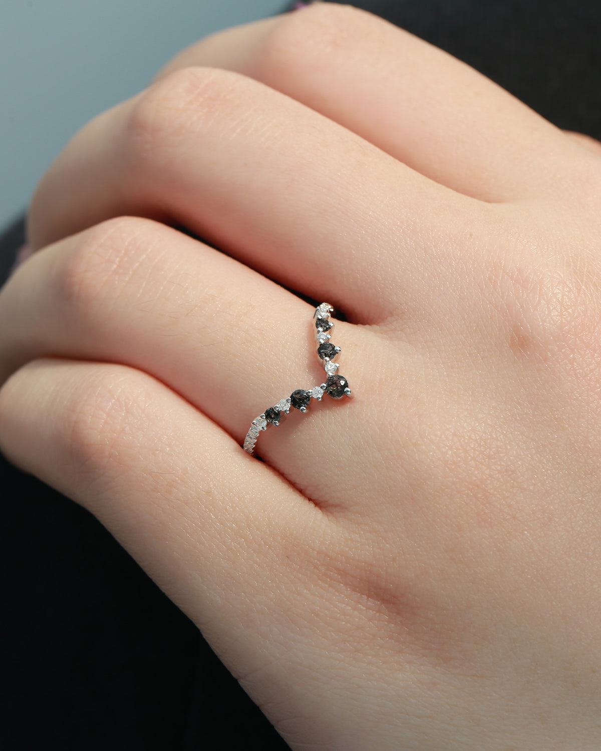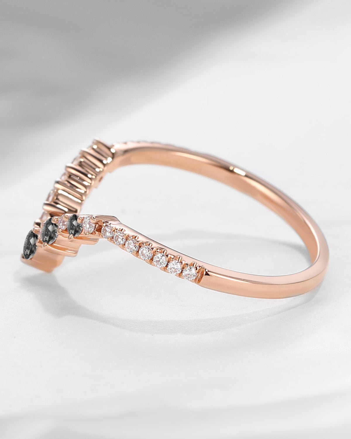 Curved Bat Wing Inspired Onyx Black Gold Wedding Enhancer Ring