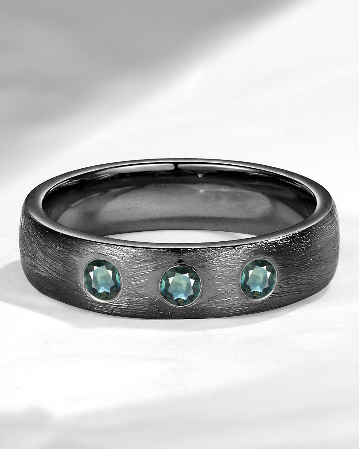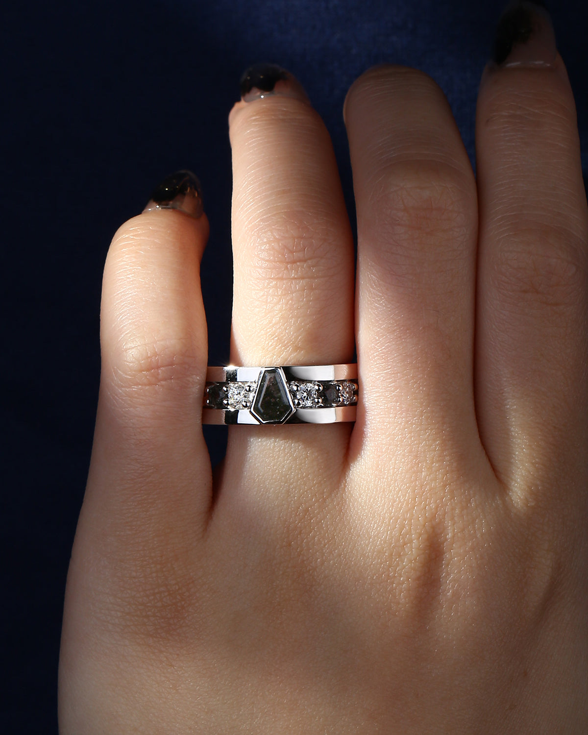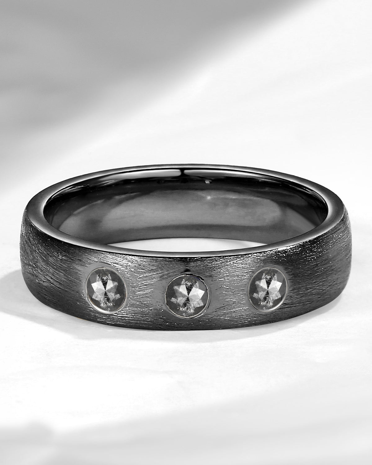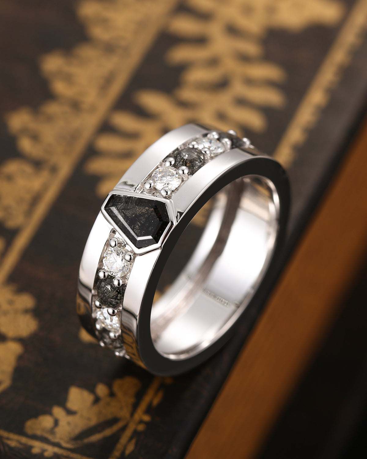 Hexagon Natural Salt And Pepper Diamond Wedding Band For Men
