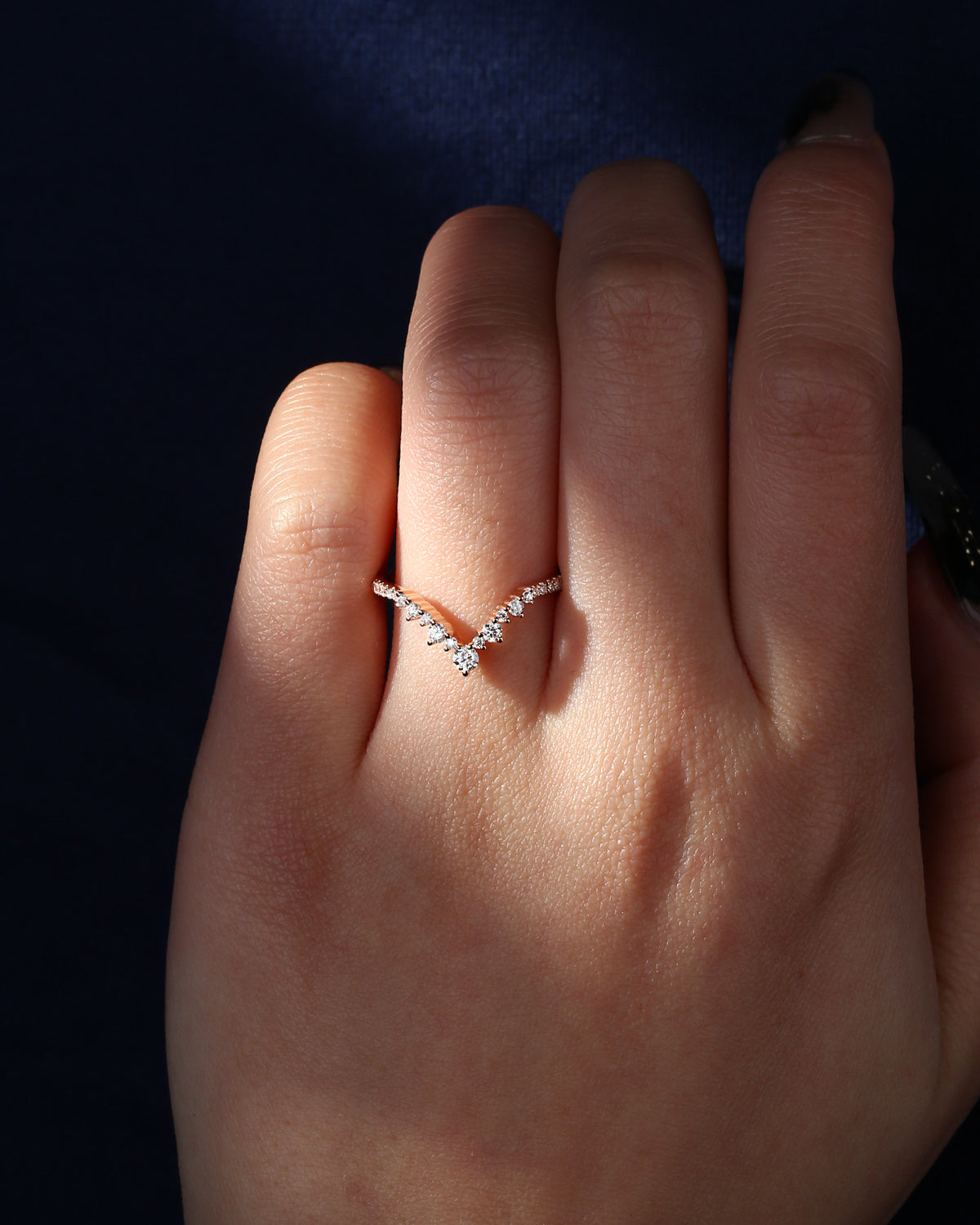 Unique Bat Wing Inspired Curved Malachite Wedding Enhancer Ring