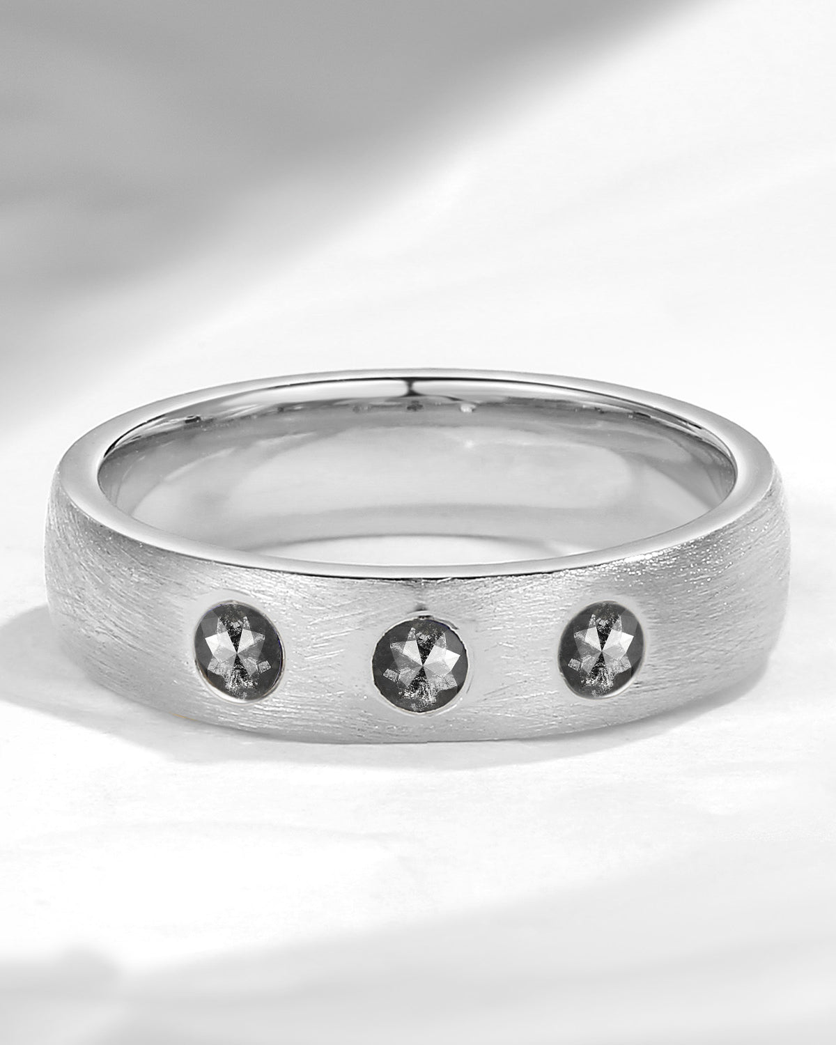 Round Natural Salt And Pepper Diamond Wedding Band For Men