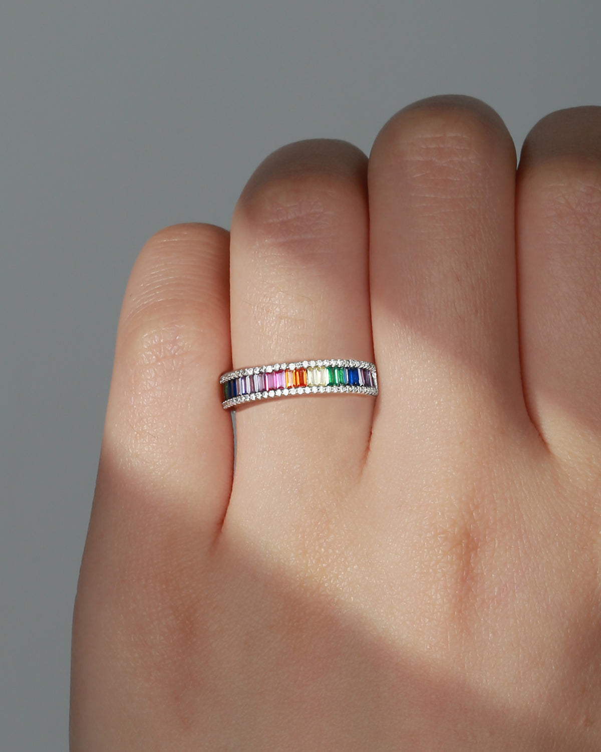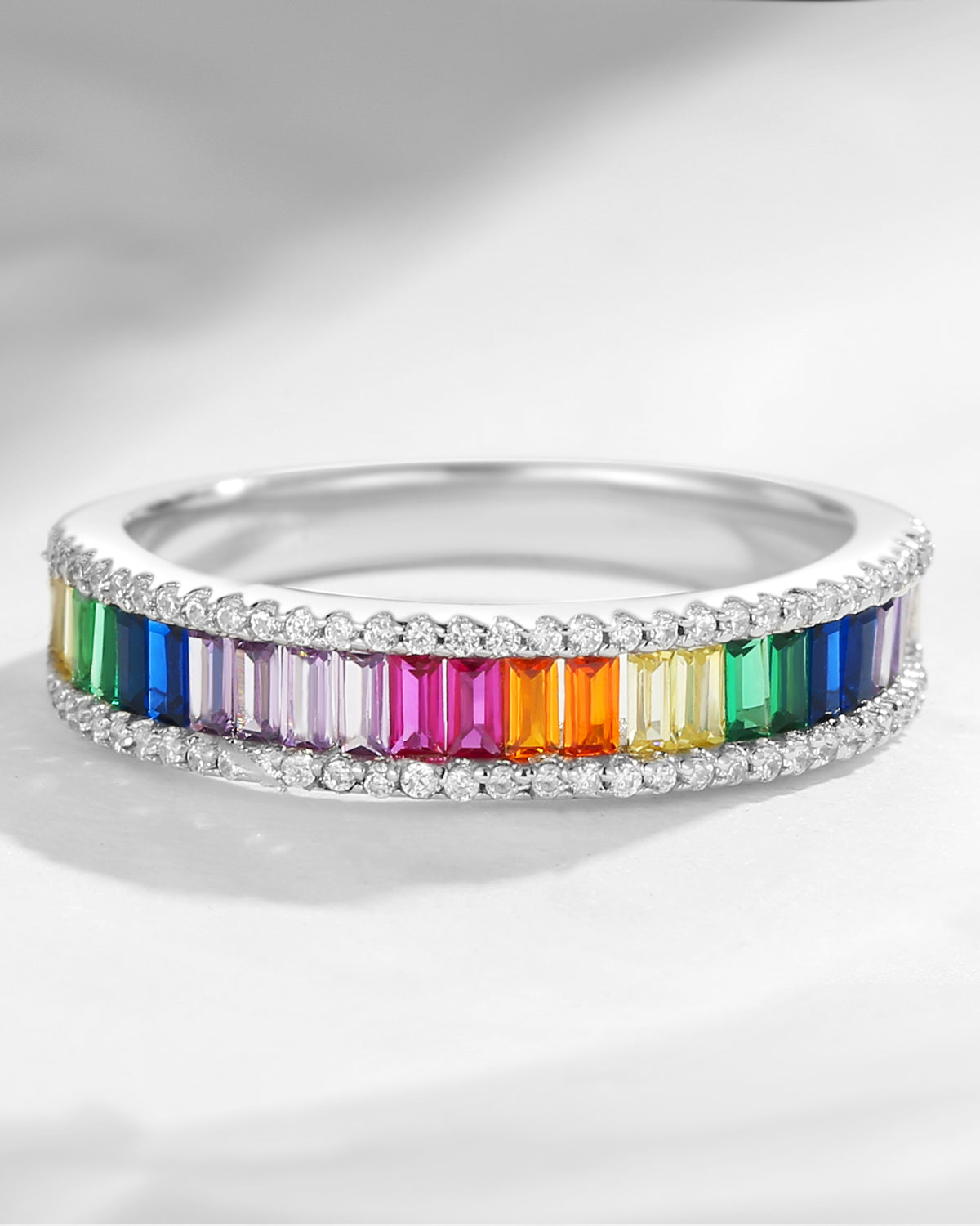Full Eternity Baguette Cut Pave Rainbow Ring