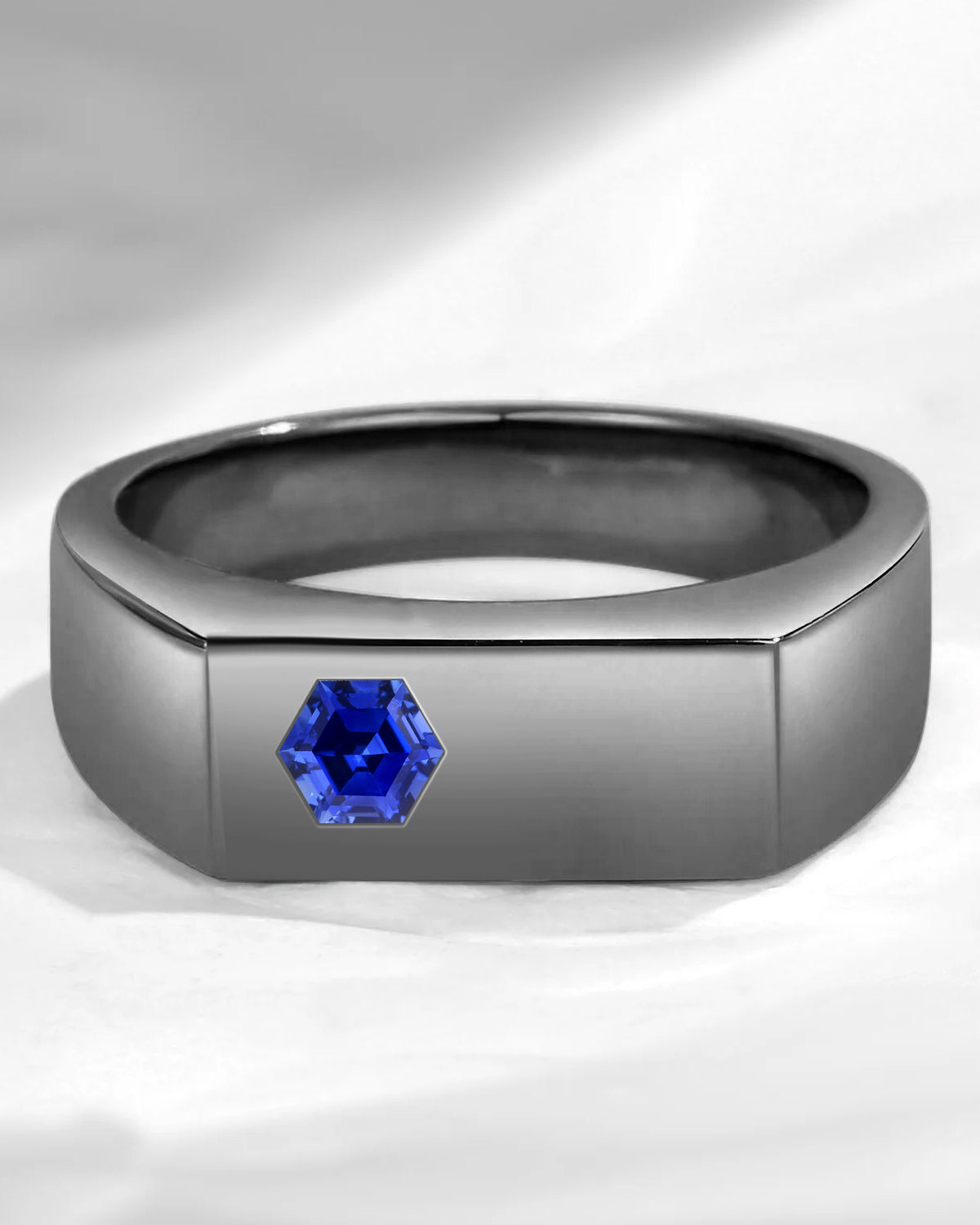 Unique Hexagon Lab Sapphire Wedding Band For Men