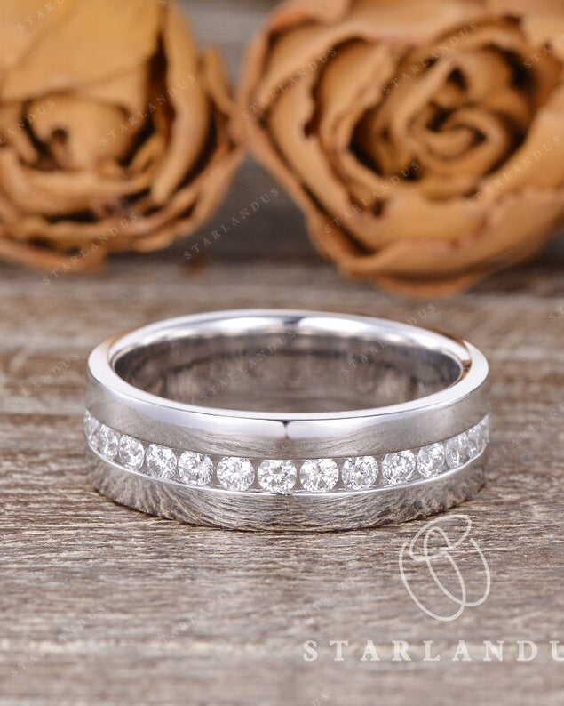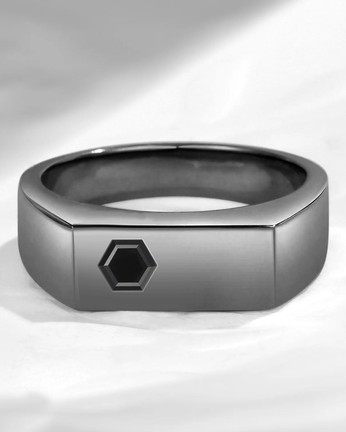 Unique Hexagon Black Moissanite Wedding Band For Men
