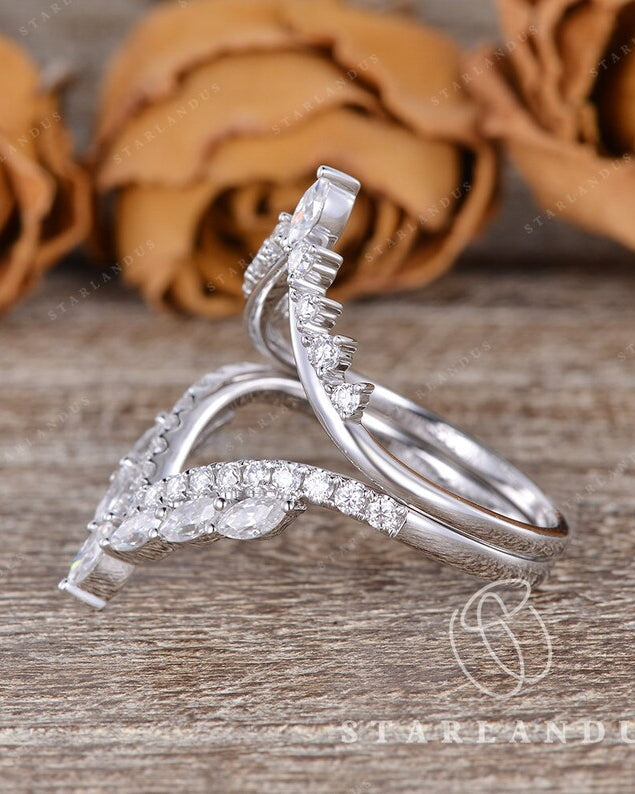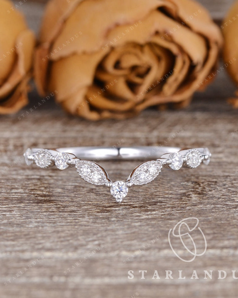Vintage Inspired Marquise Moissanite Cluster Ring