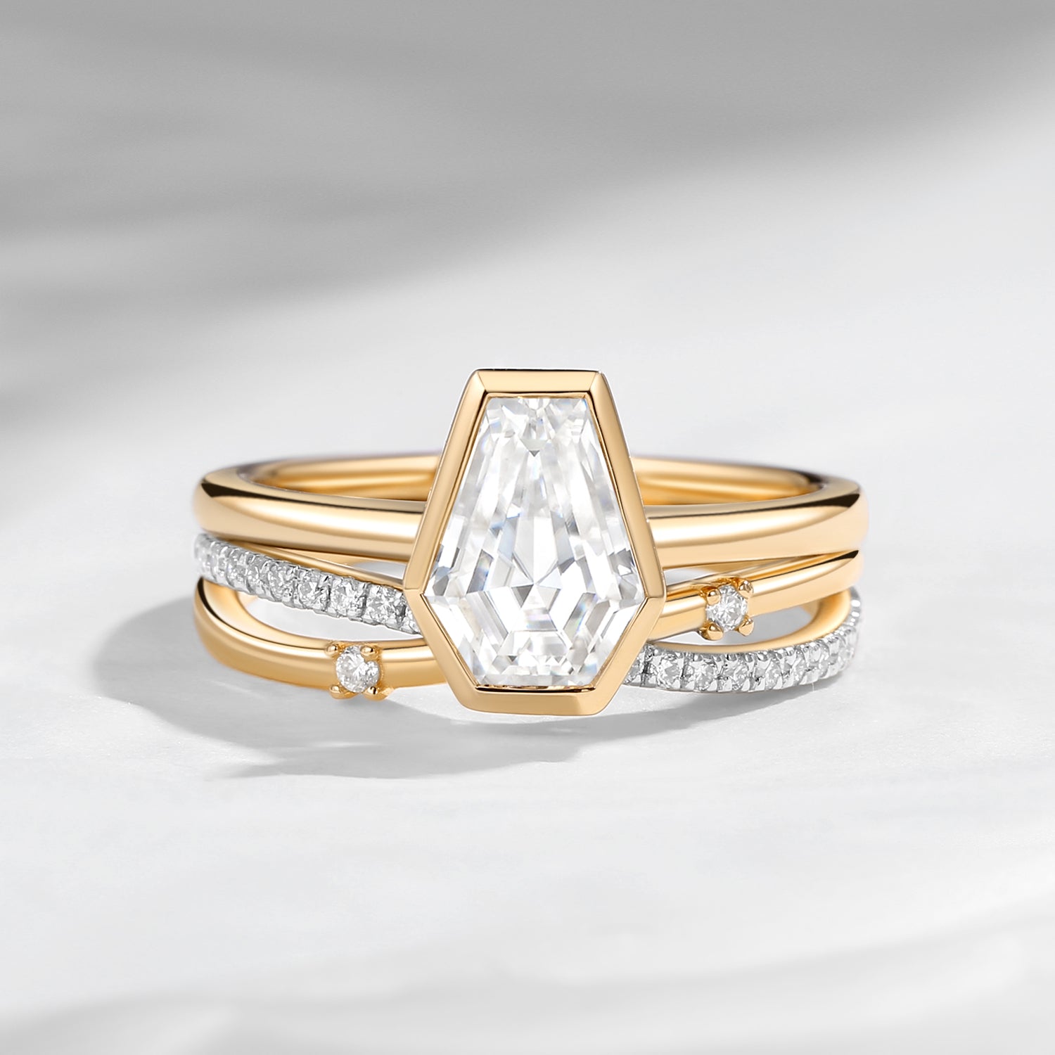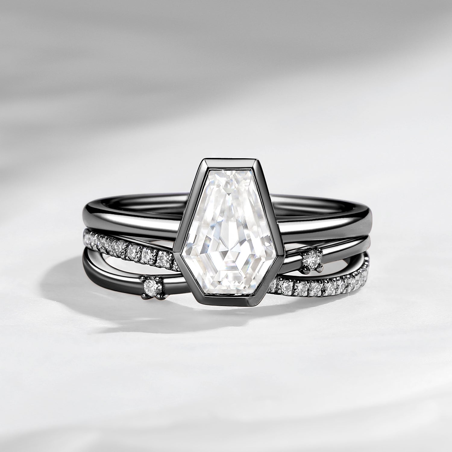 ⟢ Center Stone: Faceted Coffin Cut Moissanite, 6*8mm