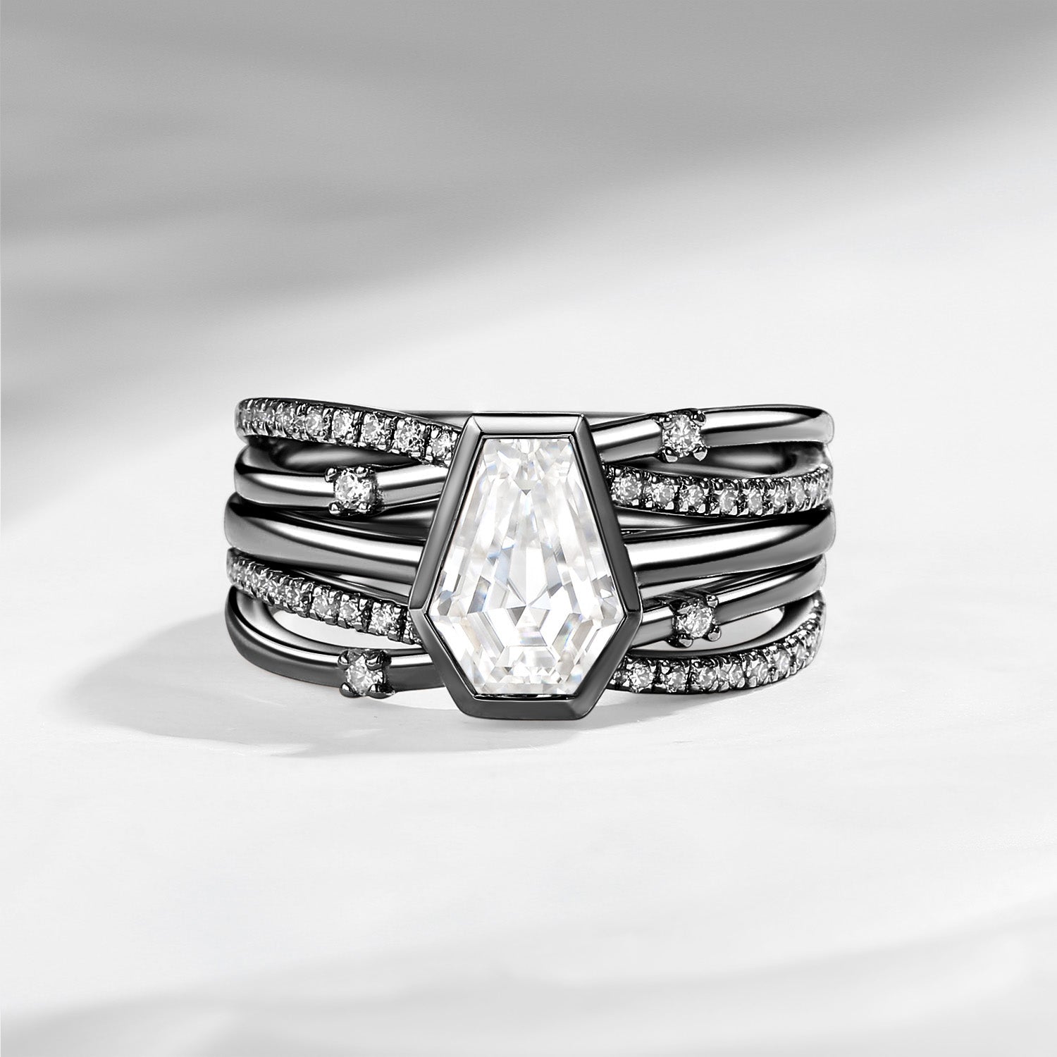 ⟢ Center Stone: Faceted Coffin Cut Moissanite, 6*8mm