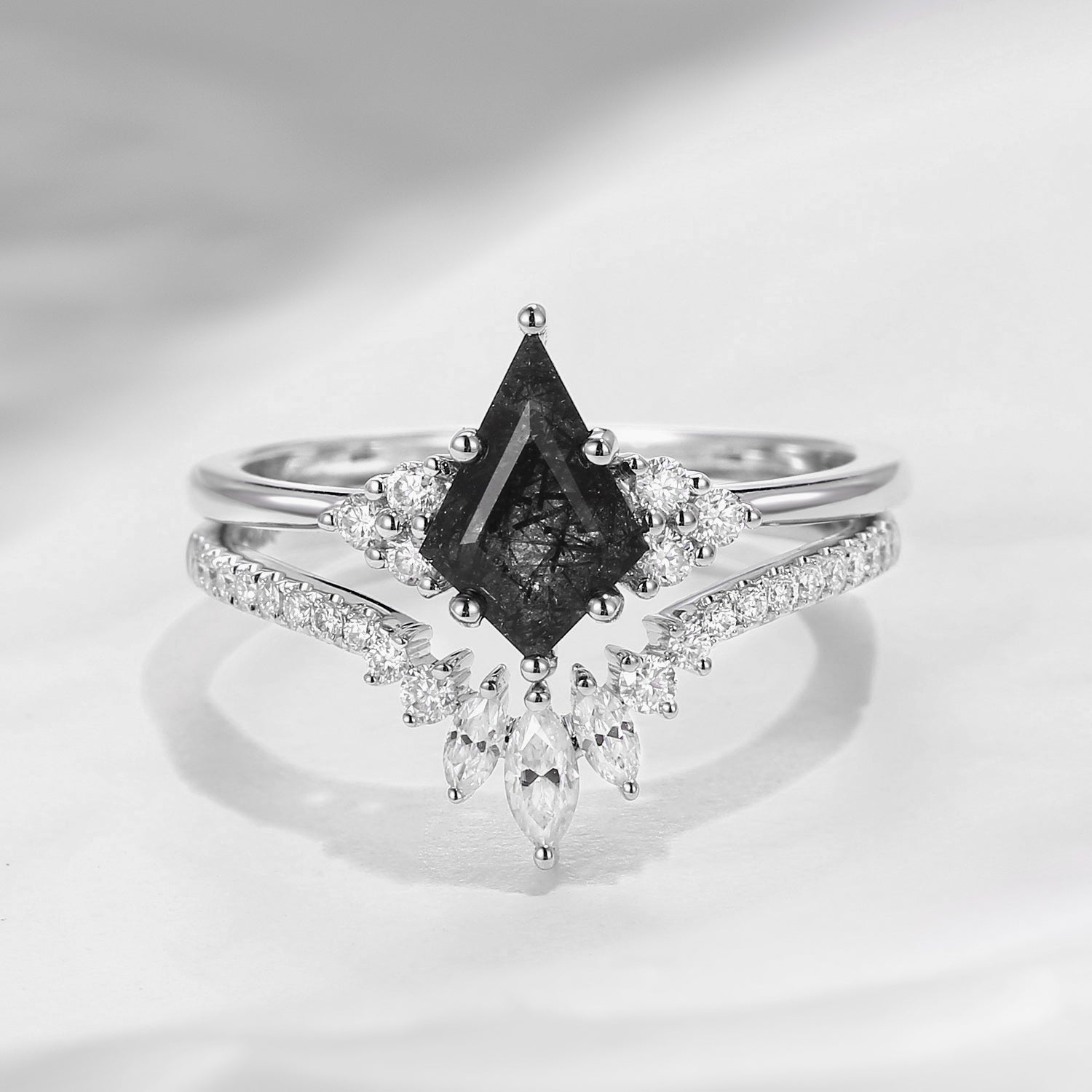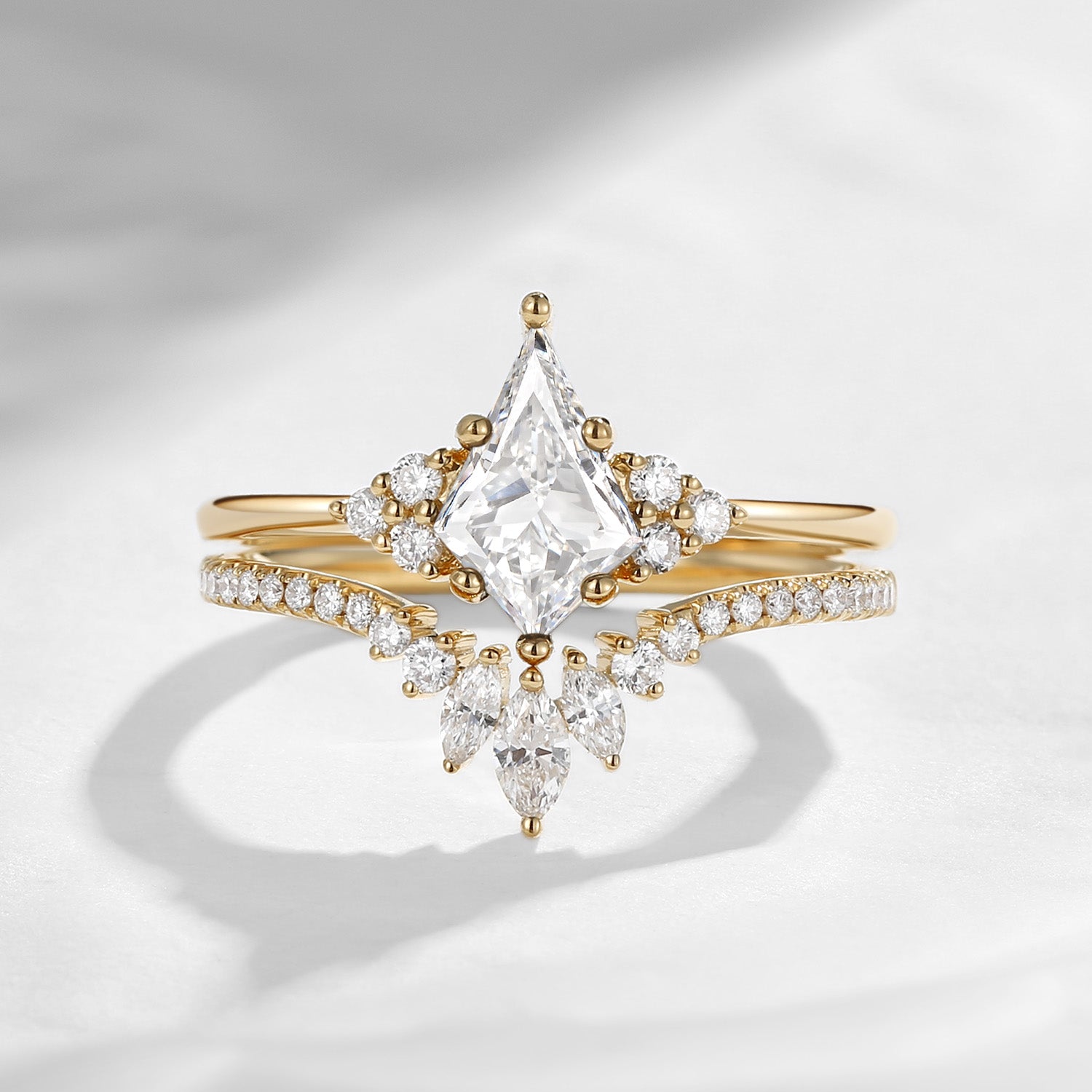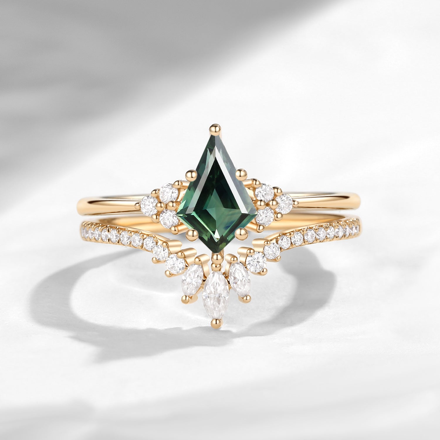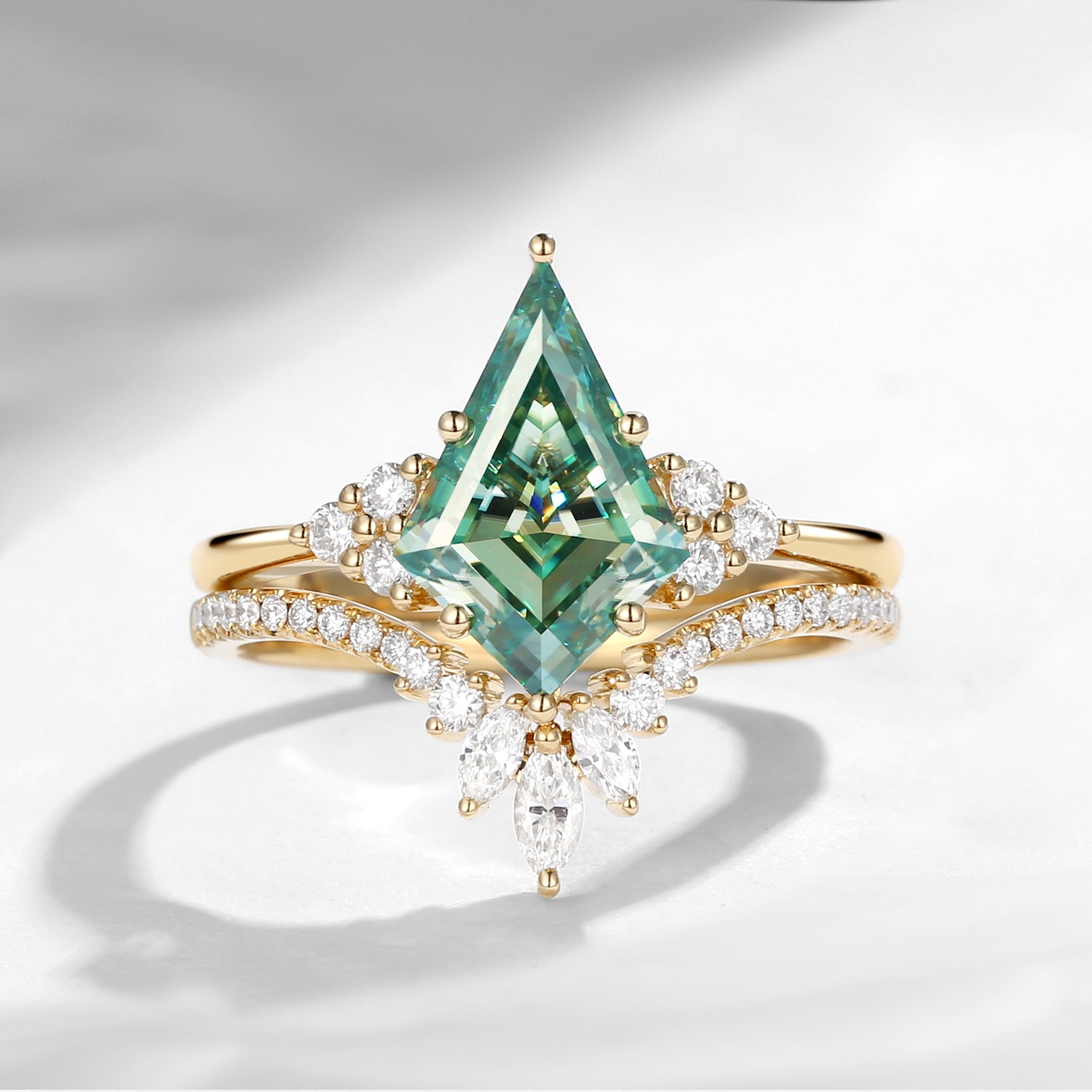 Kite Cut Teal Moissanite Engagement Ring Set 2pcs - Electra