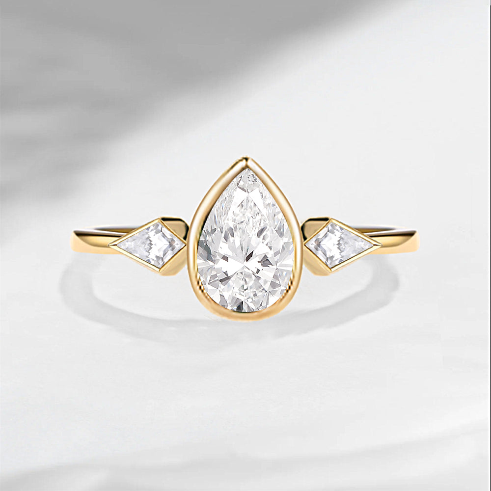 Solitaire Pear Shaped Moissanite Engagement Ring - Kite Wing