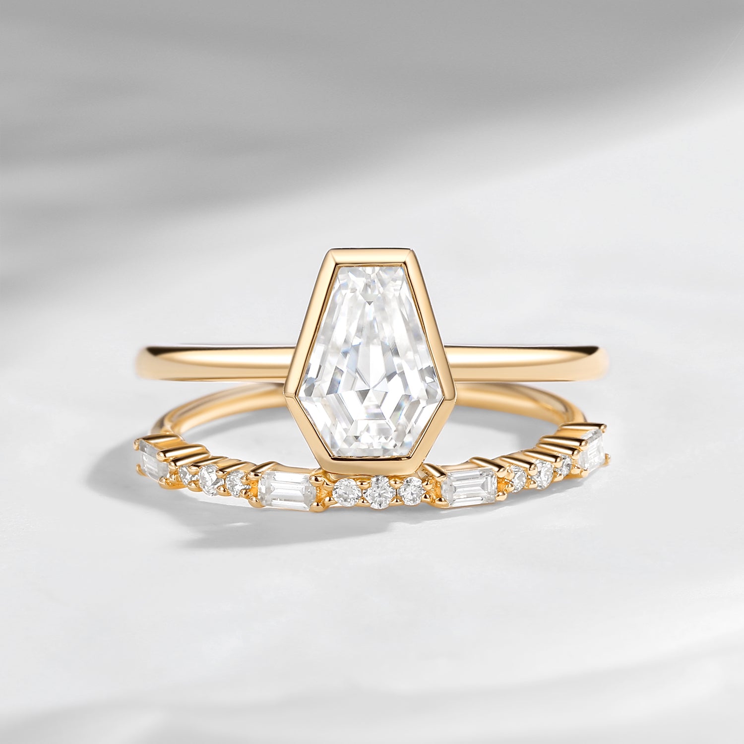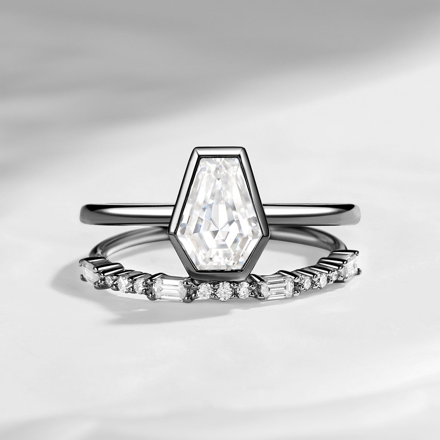 Unique Coffin Moissanite Solitaire Engagement Ring Set 2pcs Straight Wedding Band