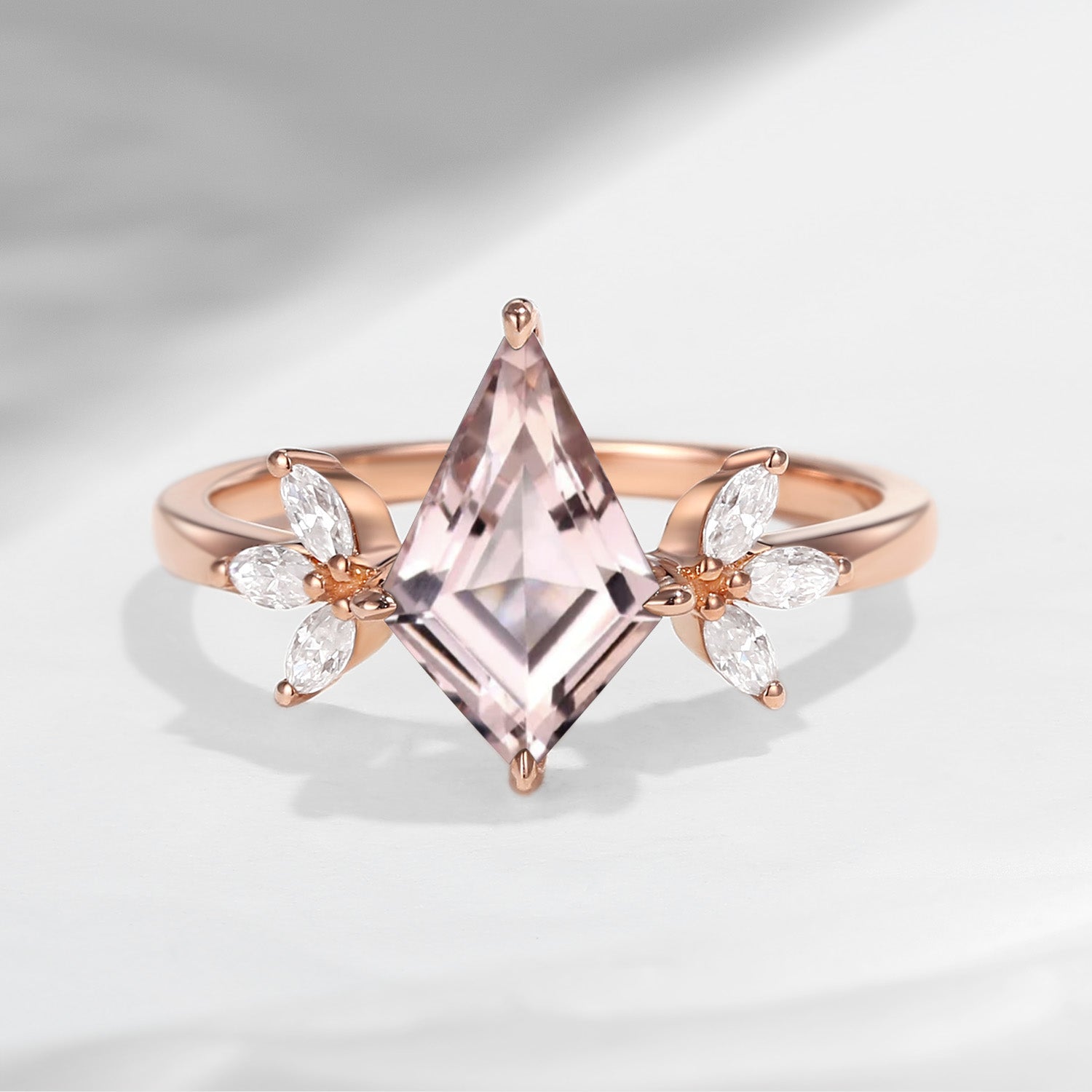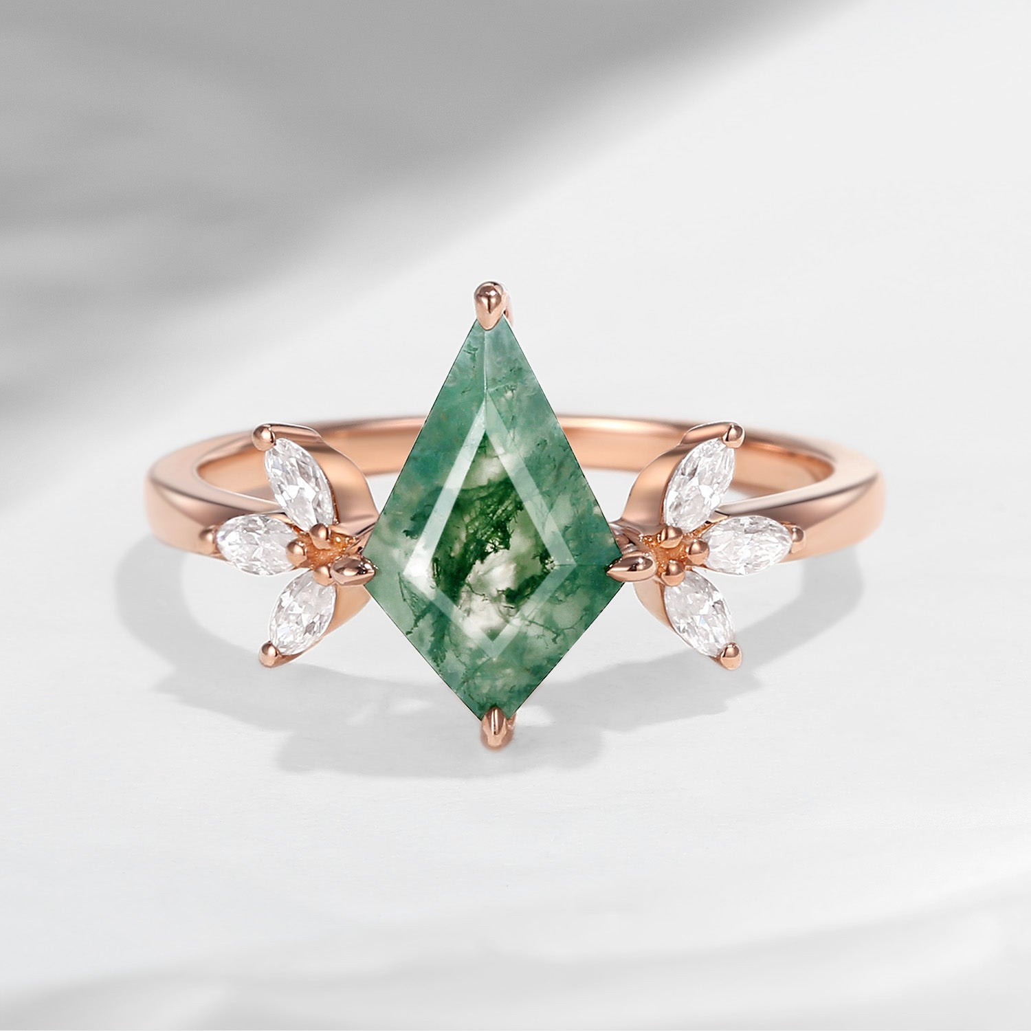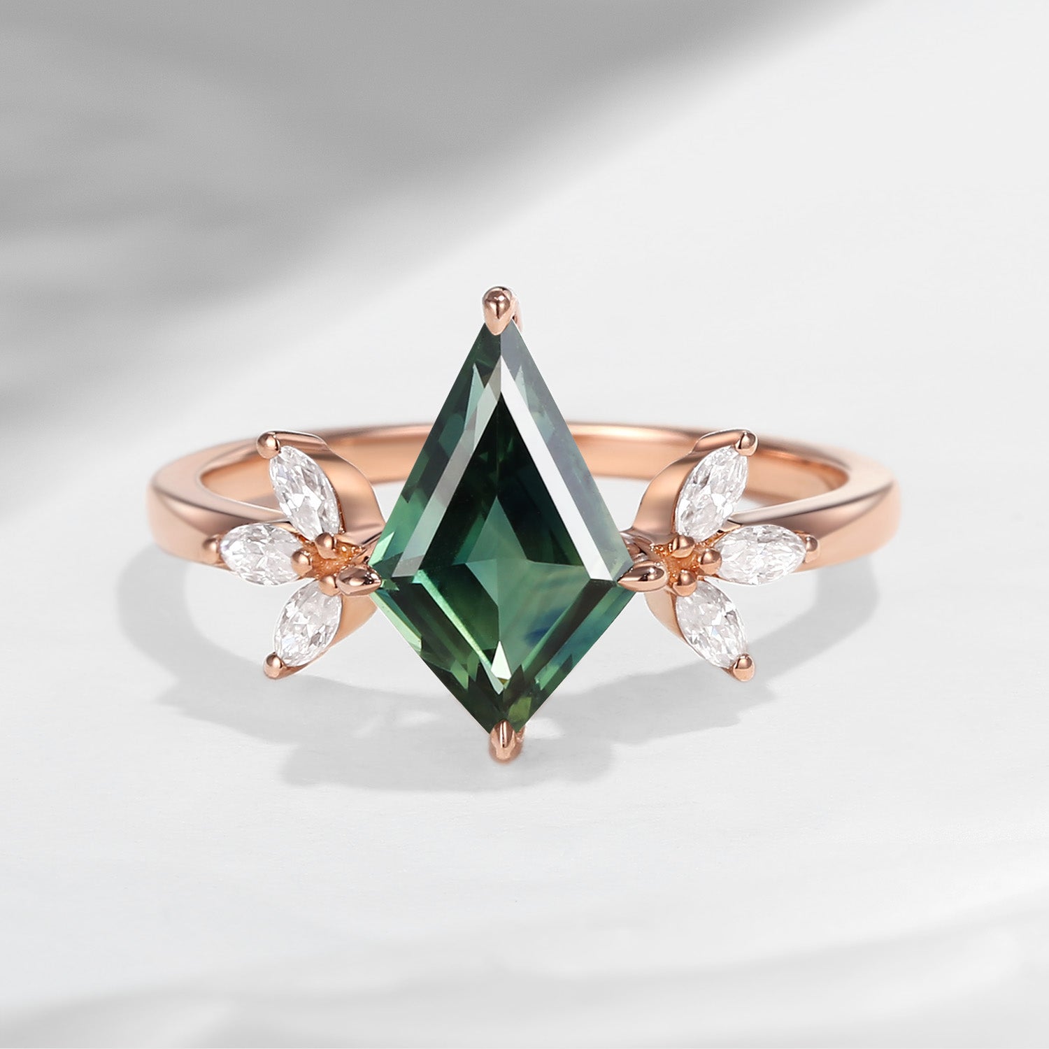 Kite Shaped Green Moissanite Engagement Ring Kite Engagement Ring Green Moissanite Unique Art Deco Flower Gift