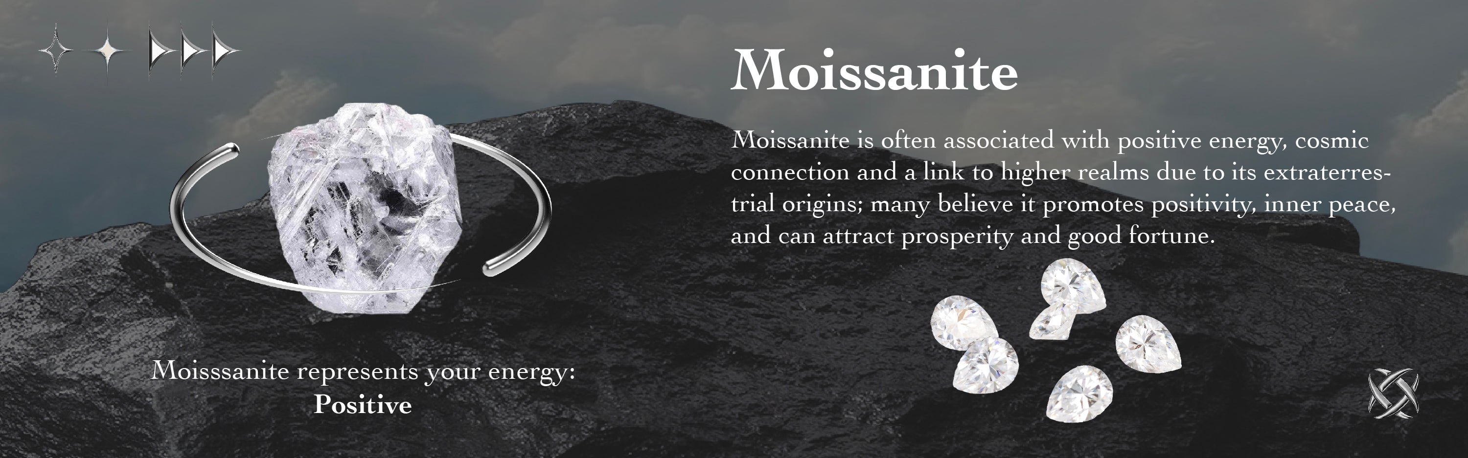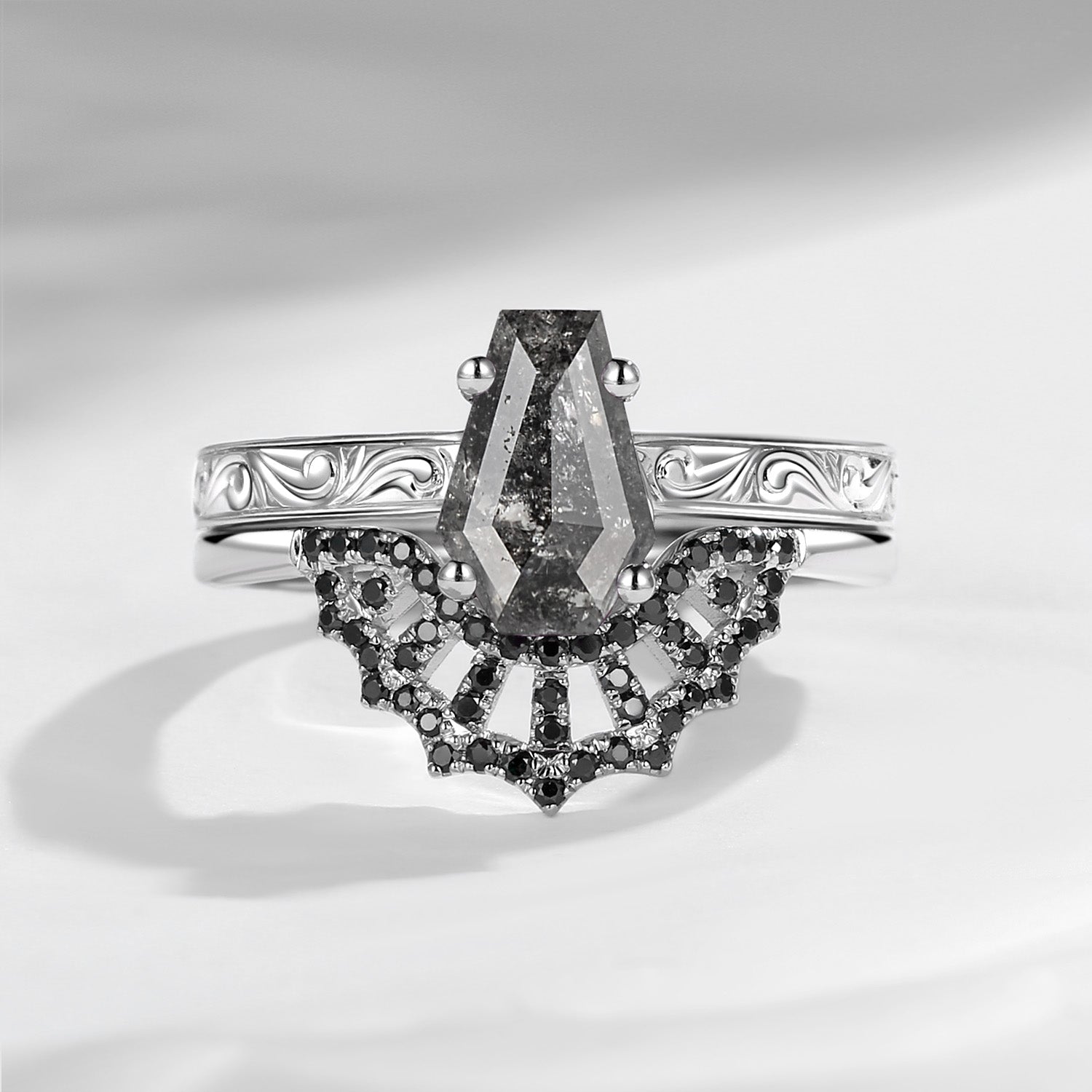 ⟢ Side Stone: Black Moissanite/Diamond, about 0.25ct