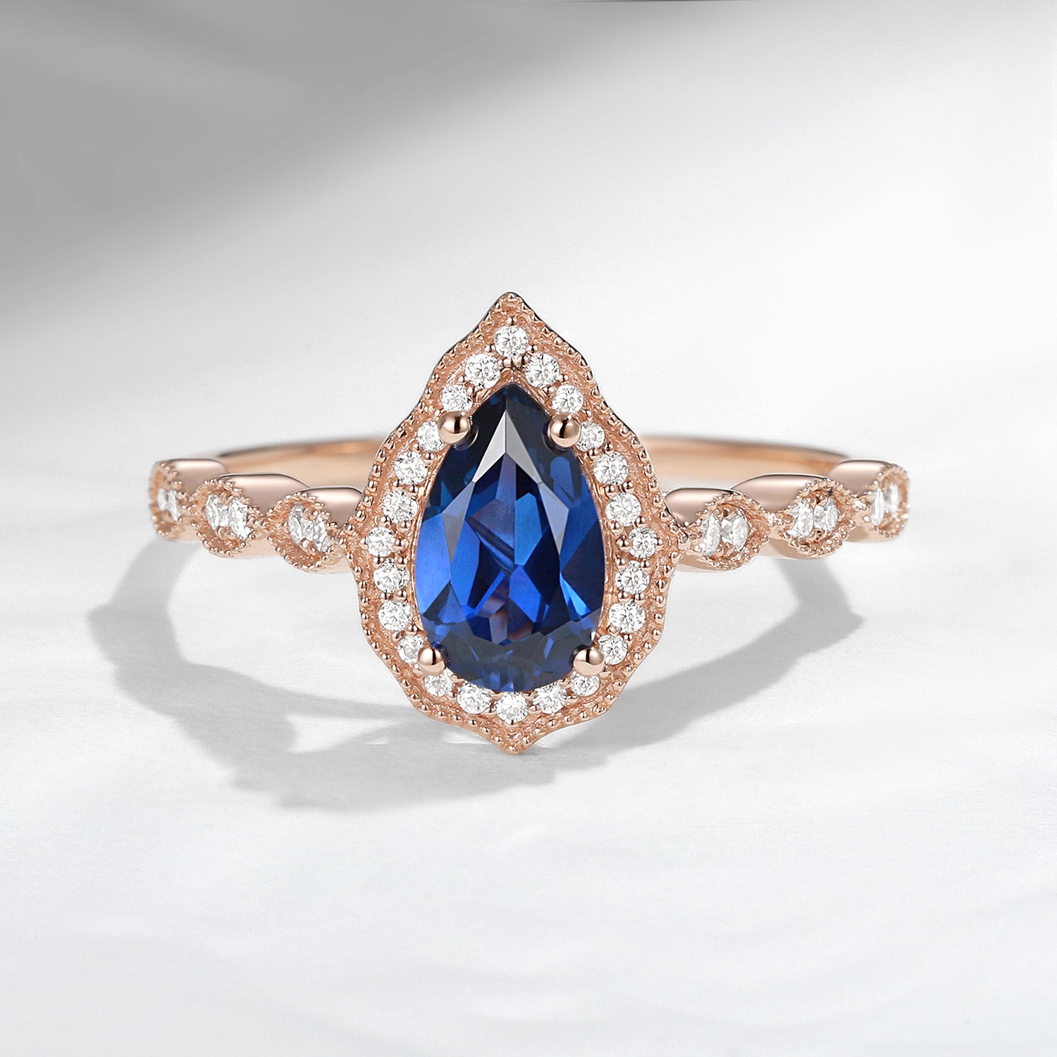 Vintage Pear Cut Moissanite Engagement Halo Ring