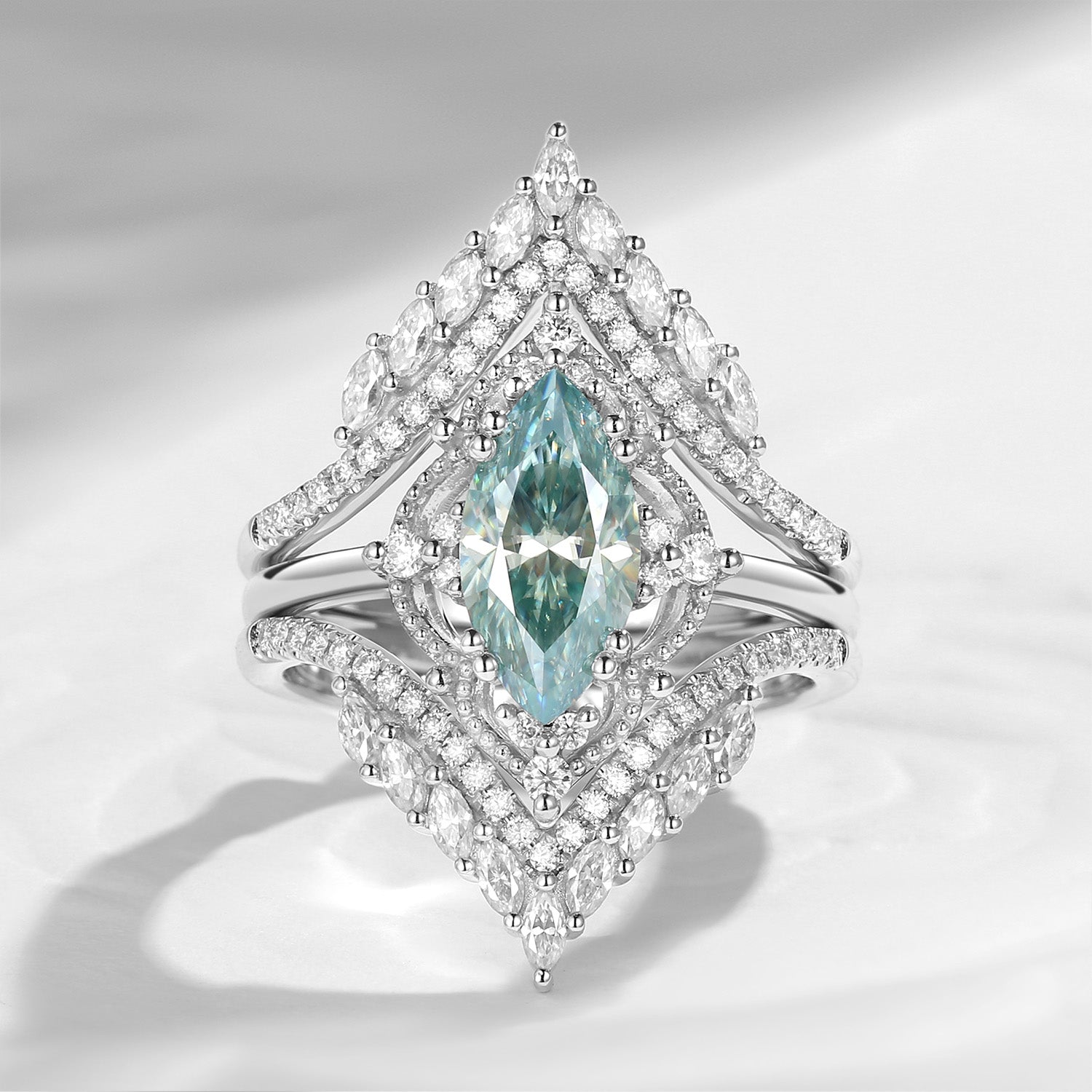 ⟢ Center Stone: 5x10mm Colorless Moissanite, about 1ct