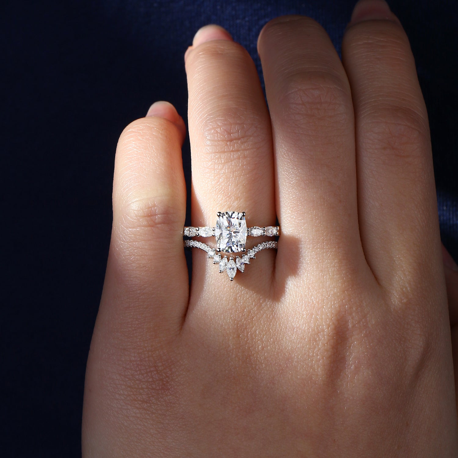 Pure Moon | Fancy Long Hexagon Moissanite Engagement Ring Set 2pcs