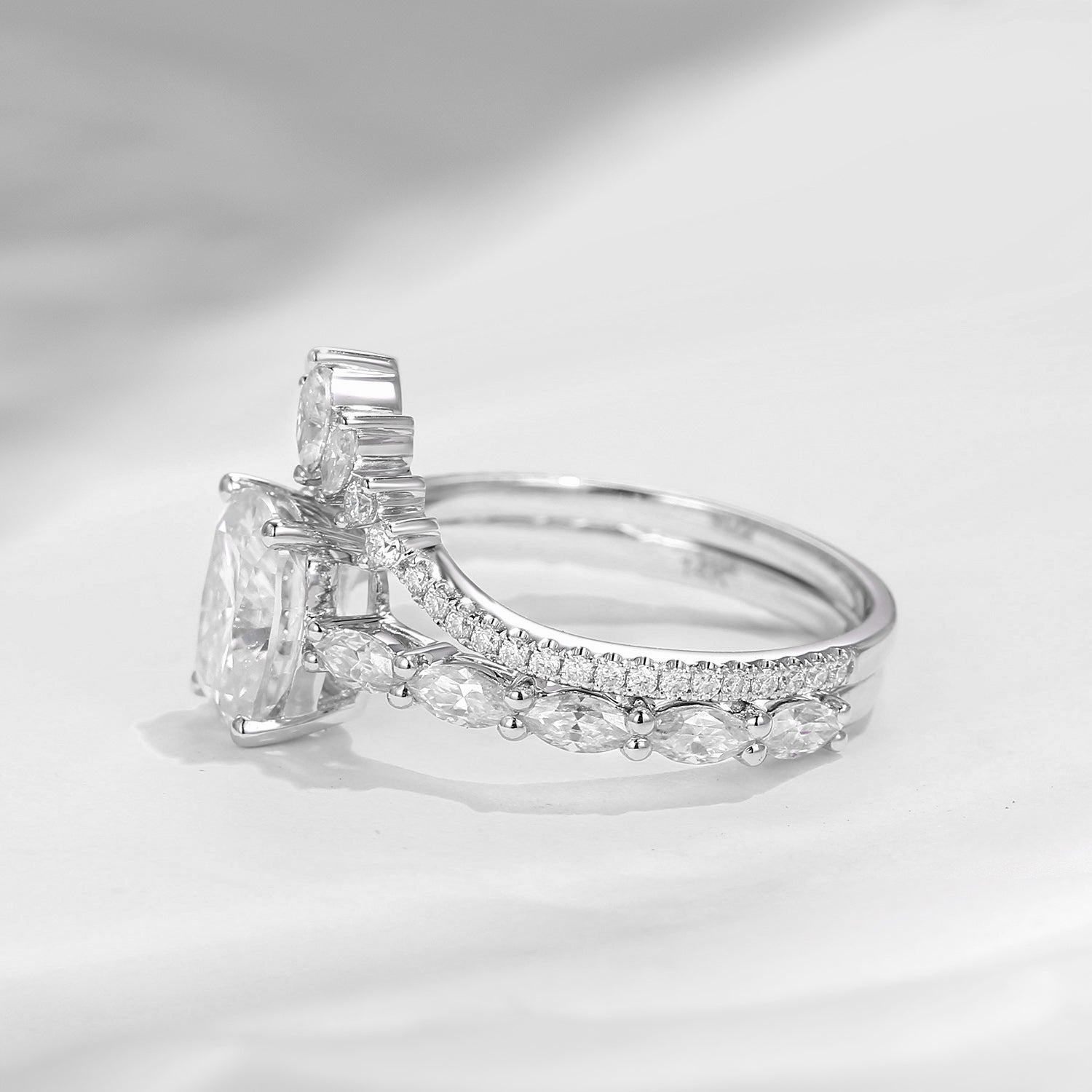 Pure Moon | Fancy Pear Cut Moissanite Engagement Ring Set 2pcs