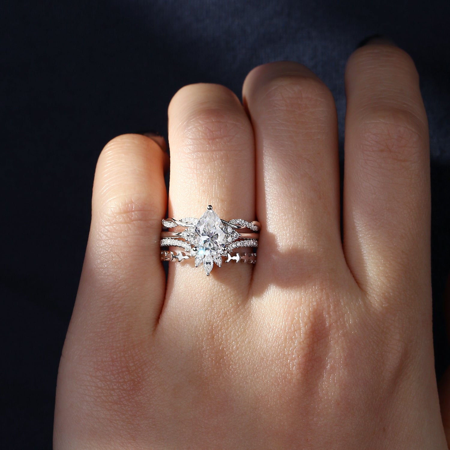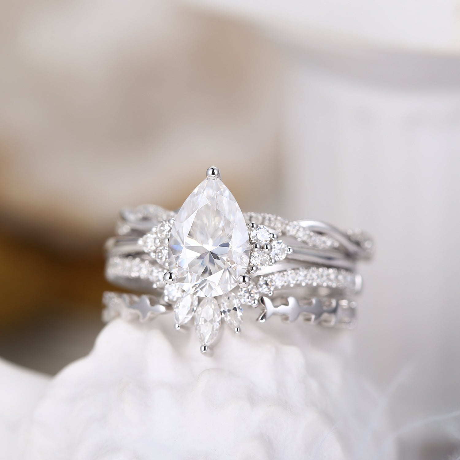 1.5ct Pear Cut 'Stacking Cluster Extravaganza' Ring Set 4pcs